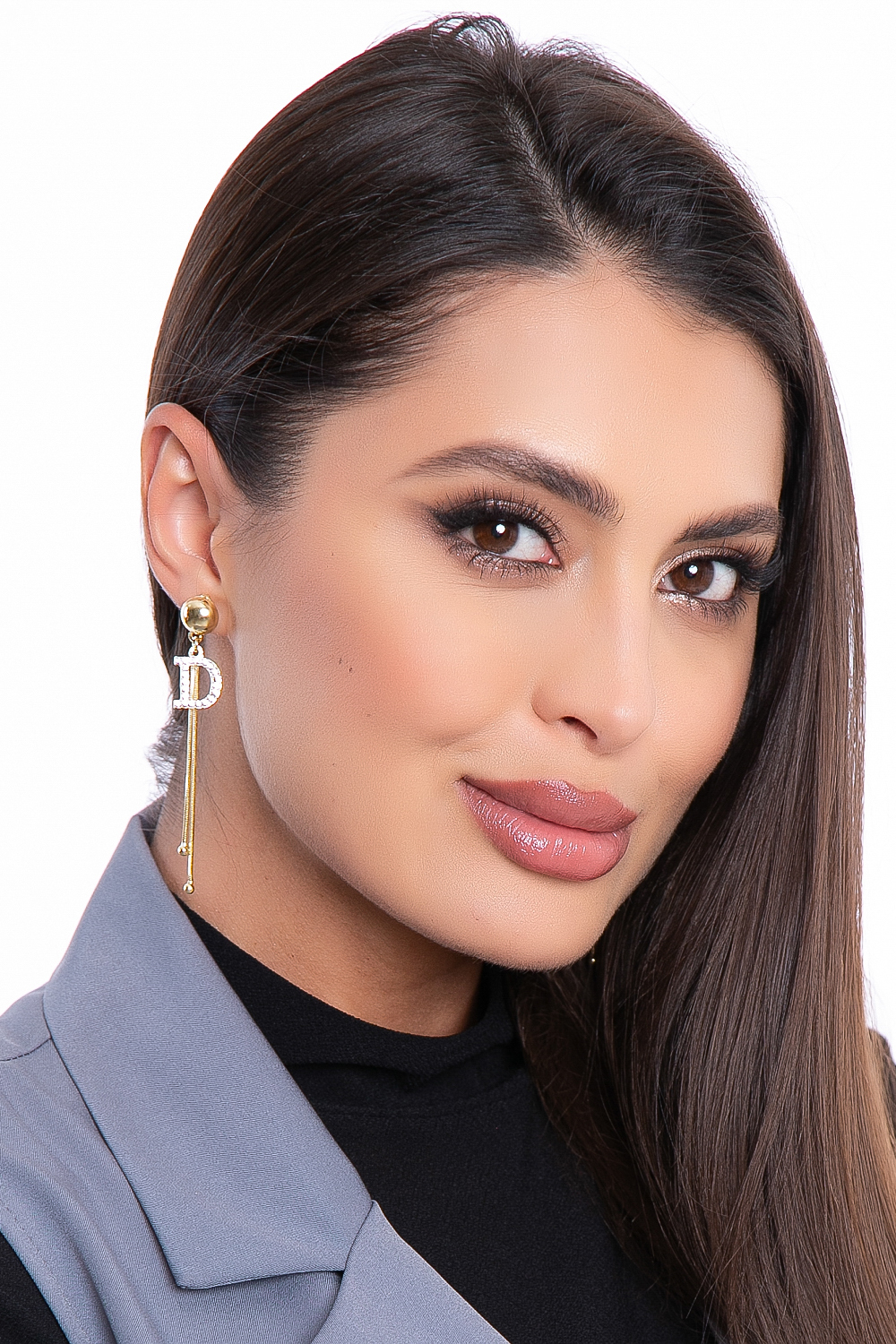 Тип товара: серьги с декоративной буквой "D" из страз;