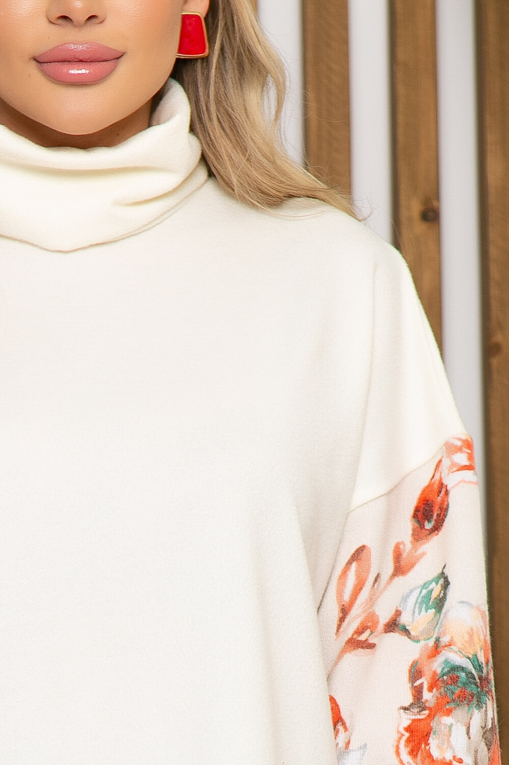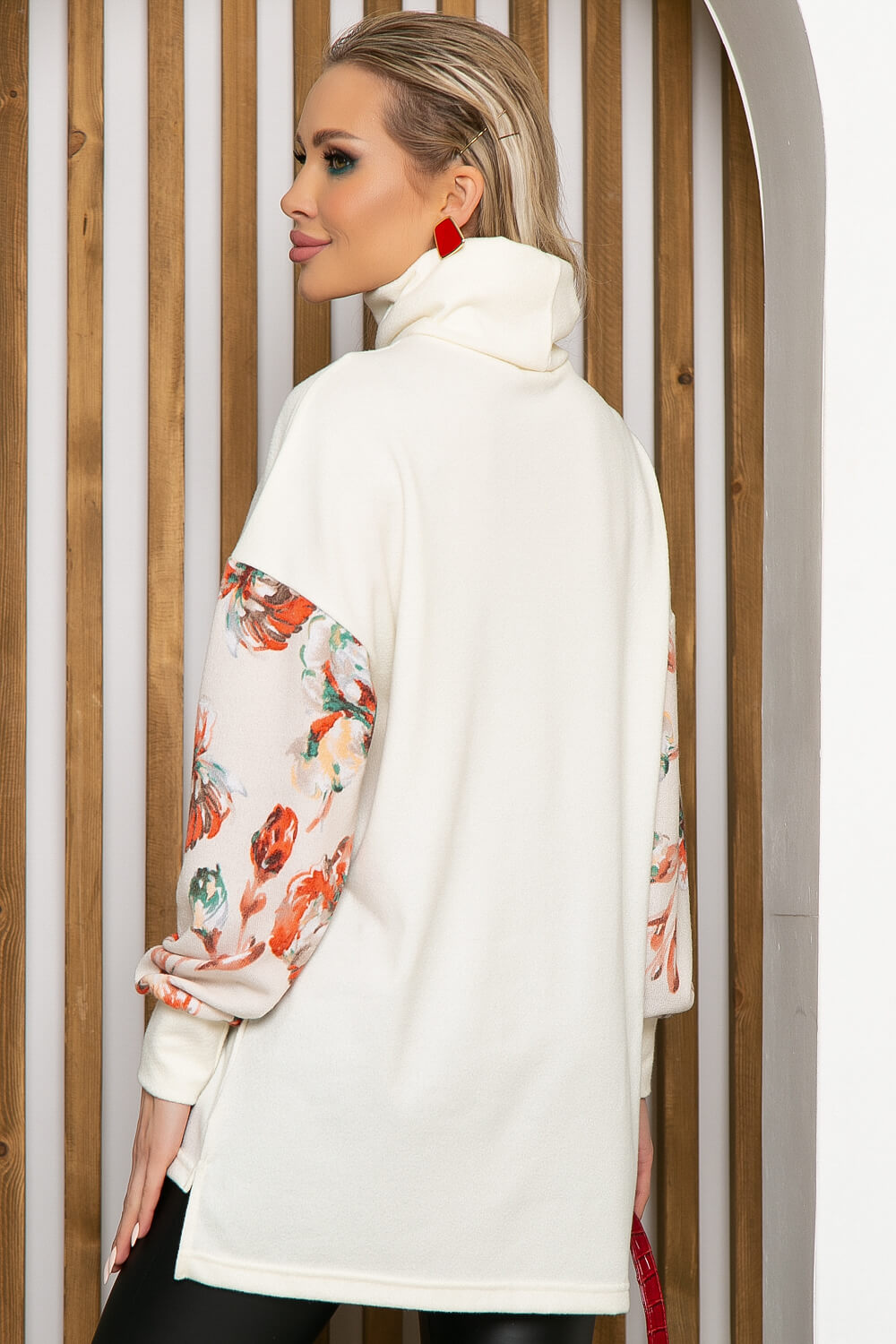 Горловина оформлена воротником "Хомут". По бокам джемпера есть разрезы.
