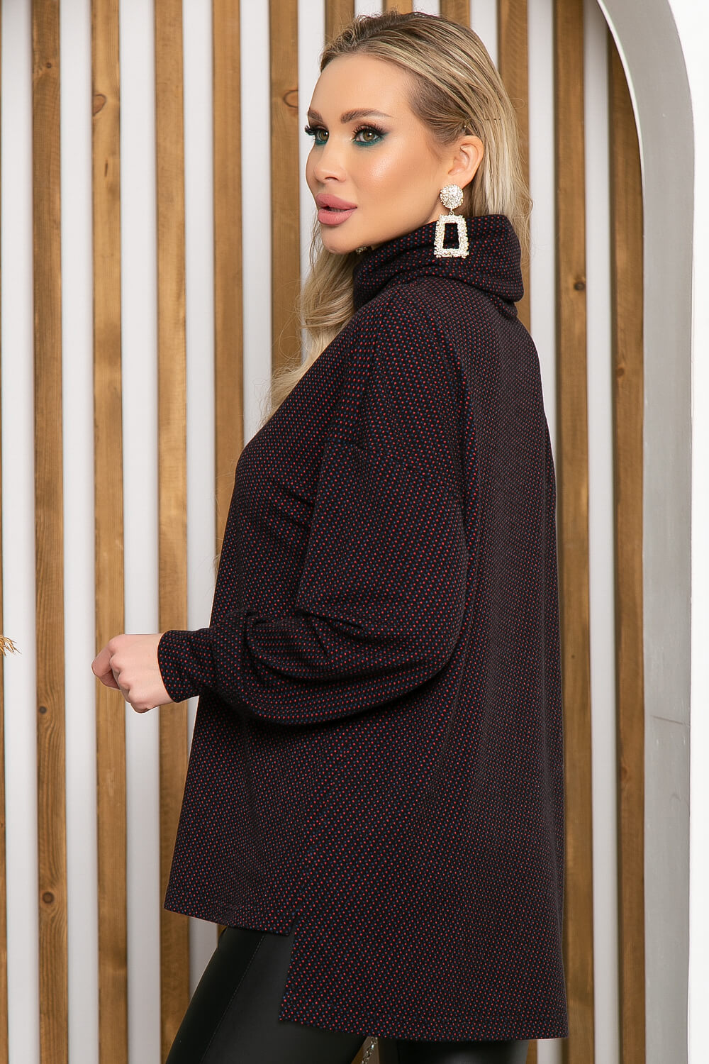 Горловина оформлена воротником "Хомут". По бокам джемпера есть разрезы.