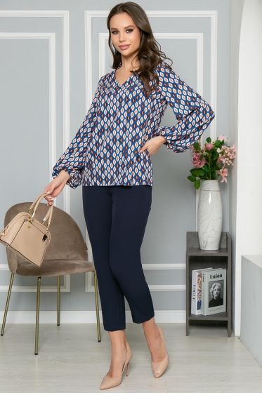 Классическая блуза свободного кроя с длинными рукавами, собранными по низу на резинку. Пышные рукава - модный тренд, который не сбавляет обороты уже несколько сезонов подряд. Яркий стильный дизайн и женственные элементы создадут для Вас новый гармоничный деловой образ. Такую блузу можно носить навыпуск или под заправку.