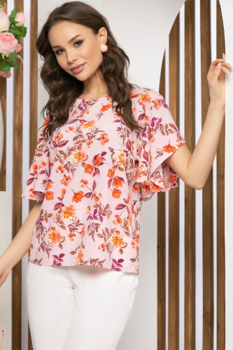 Блуза прямого кроя с цветочным принтом. Акцентной деталью являются летящие ниспадающие рукава, которые умело помогут замаскировать крупные предплечья. Данная модель комбинируется практически с любым низом, будь то брюки, юбка или летние шорты.