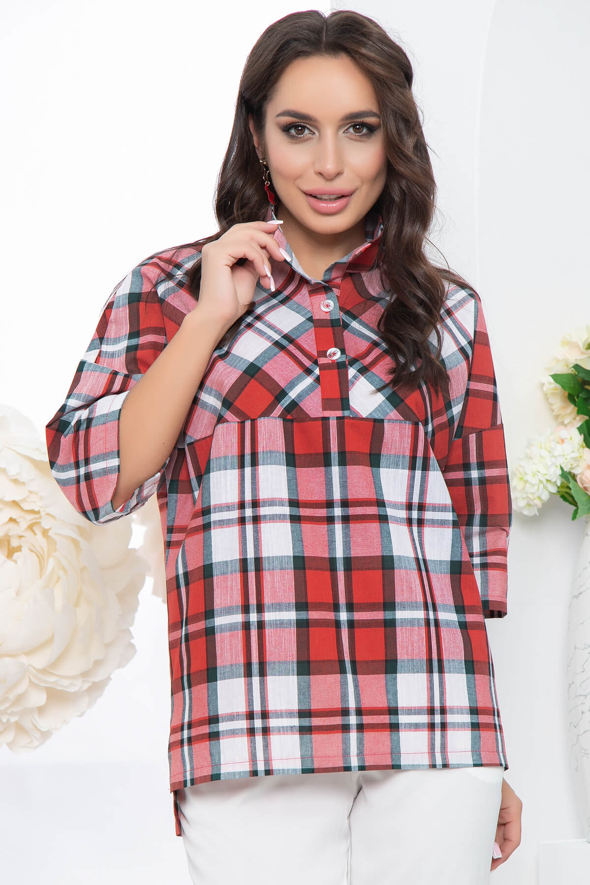 Рубашка в клетку с коротким рукавом - отличный вариант для повседневного образа. Дополните образ светлыми брюками, шортами или любимыми джинсами. Рубашка свободного кроя оснащена воротником стойкой. Линия плеча спущена, рукав укороченный. По бокам есть небольшие разрезы, спинка удлинена.