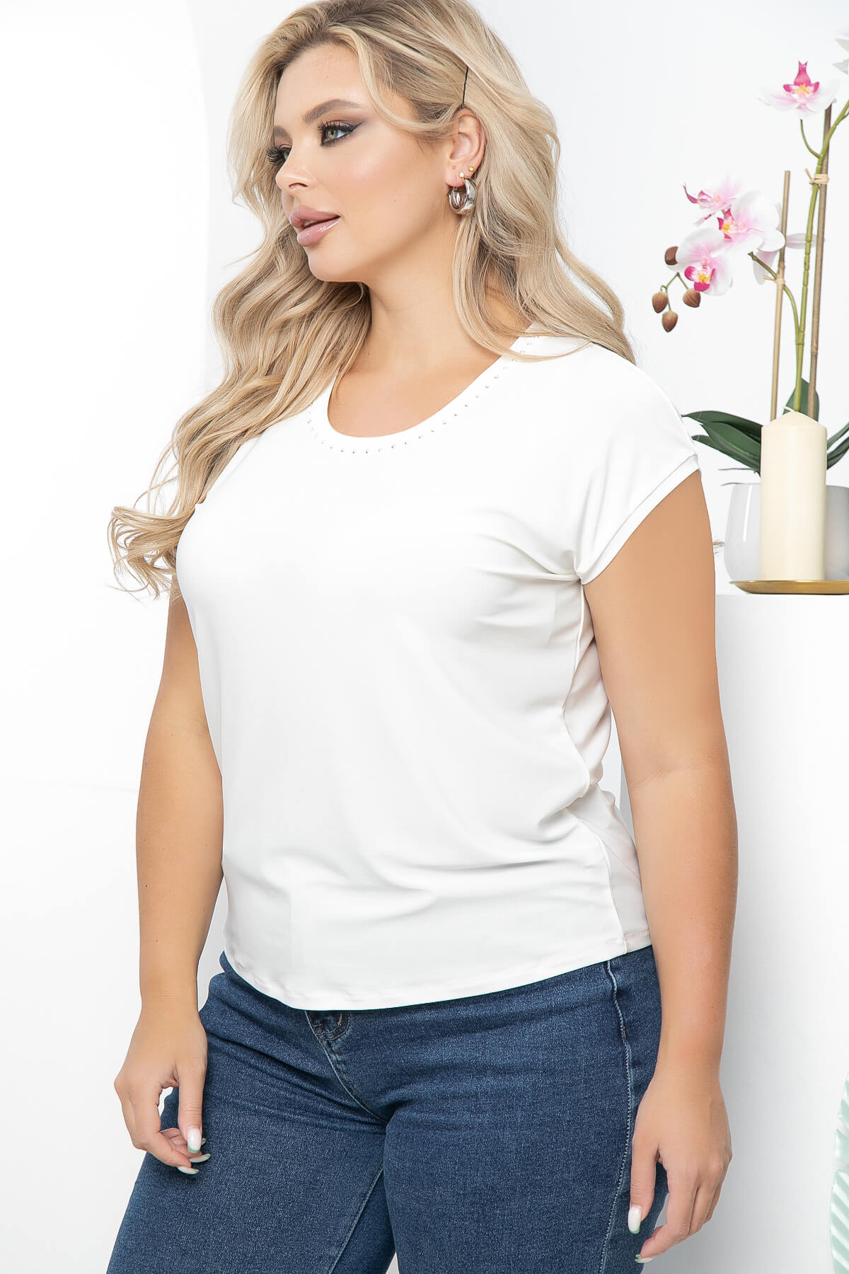 Базовая блуза - это незаменимый помощник в любом гардеробе. С ней можно сочетать практически все элементы одежды и выглядеть всегда роскошно! Рукав укороченный, цельнокроенный. Вырез округлый с элементами декора.