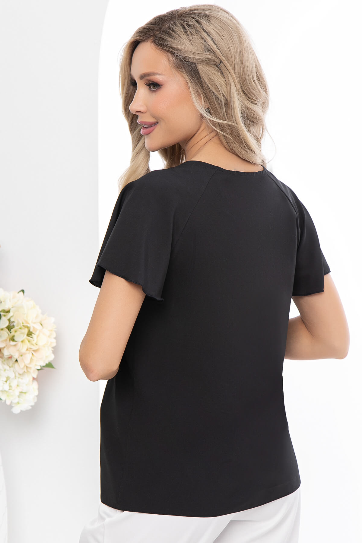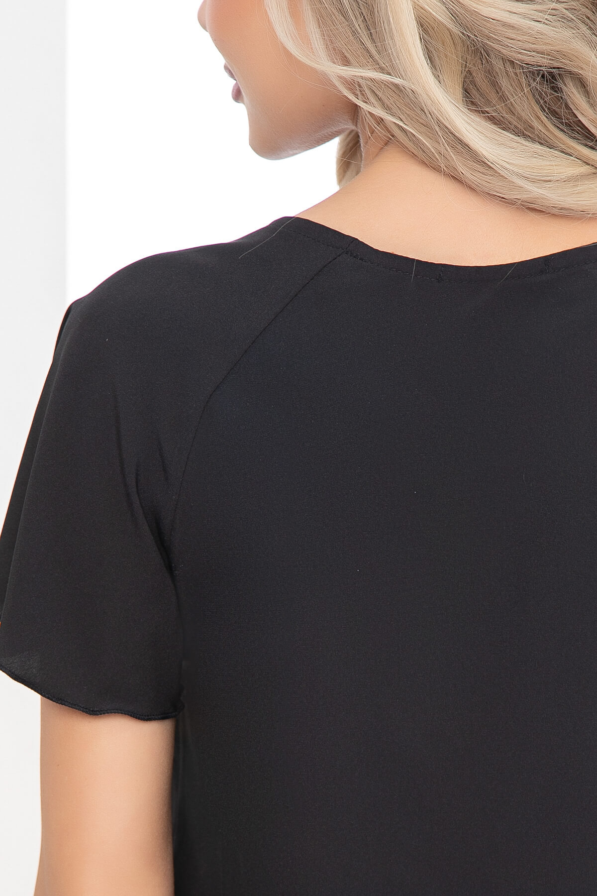 Женственная блуза придаст образу пикантности. Это универсальная вещь в гардеробе, которая подойдет как для создания офисного образа, так и для повседневной жизни. Отлично будет смотреться как с брюками, так и с денимом. Блузу свободного кроя украшает округлый вырез горловины с имитацией галстука. Рукав короткий, цельнокроенный.