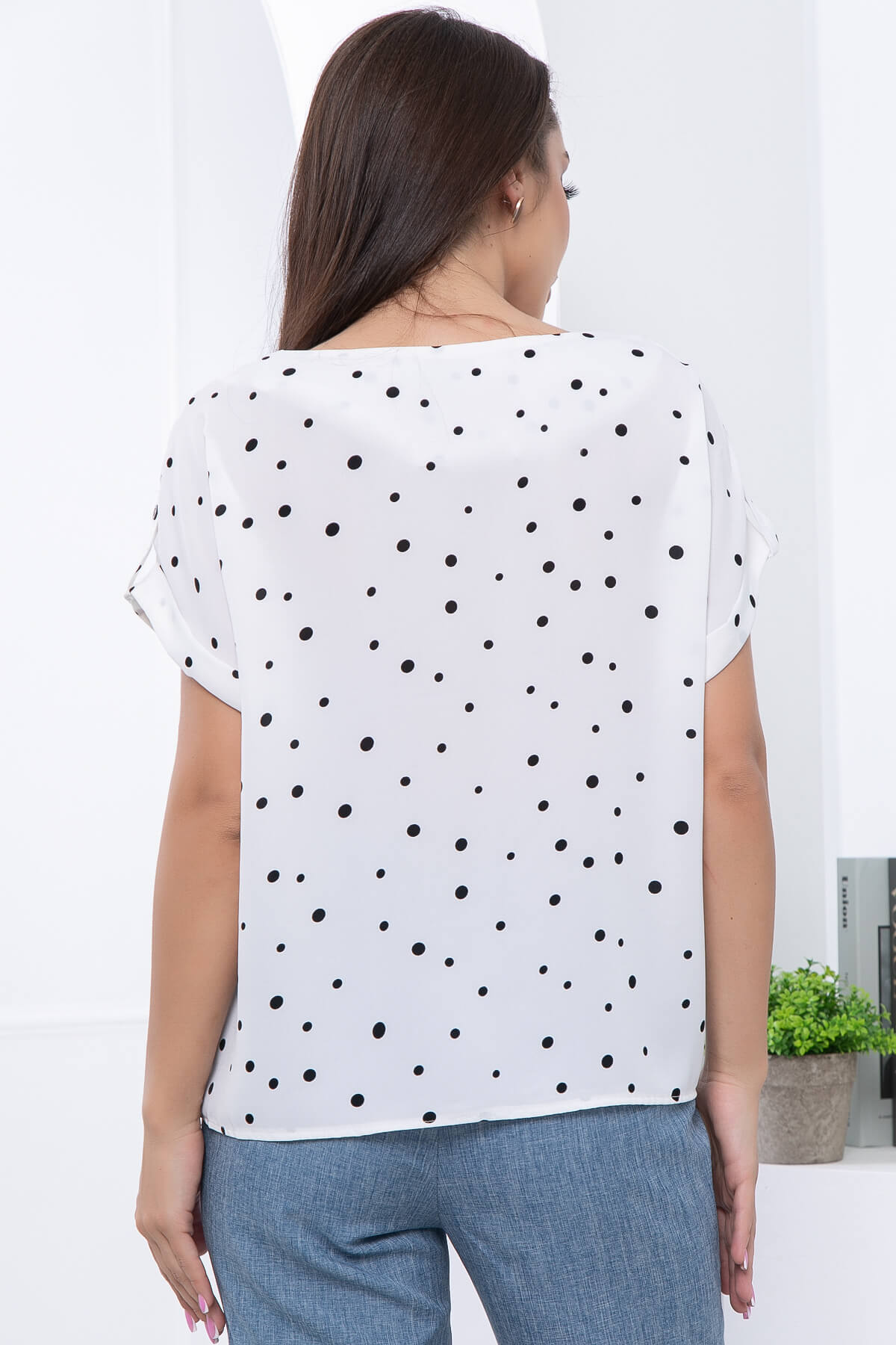 Стильная блуза - это базовый элемент гардероба на все сезоны! Она отлично смотрится с джинсами, брюками и даже юбками! Изделие дополняет стильное и съемное украшение, которое крепится на петлях в плечевых швах. Рукав укороченный, украшен декоративной патой.