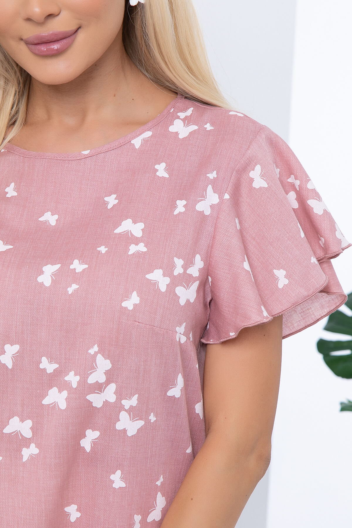 Блуза, выполненная из приятной к телу ткани, которая украсит собой лёгкий летний образ. Рукав-волан создаёт ощущение лёгкости и невесомости всего образа. В комплект входит пояс из основной ткани.