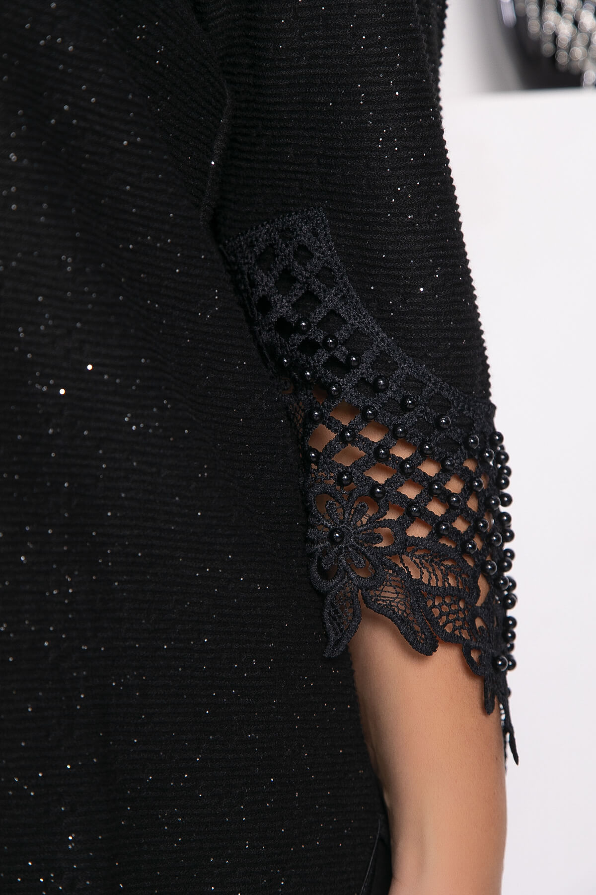 Джемпер из трикотажа с люрексом считается одним из самых трендовых предметов одежды. Вещи из блестящих тканей буквально покорили модниц всего мира. Изделие украшают свободные рукава с отделкой из кружева с бусинами. Изделие отлично смотрится с брюками и юбками. Оно отлично подходит по любой праздничный вечер!
