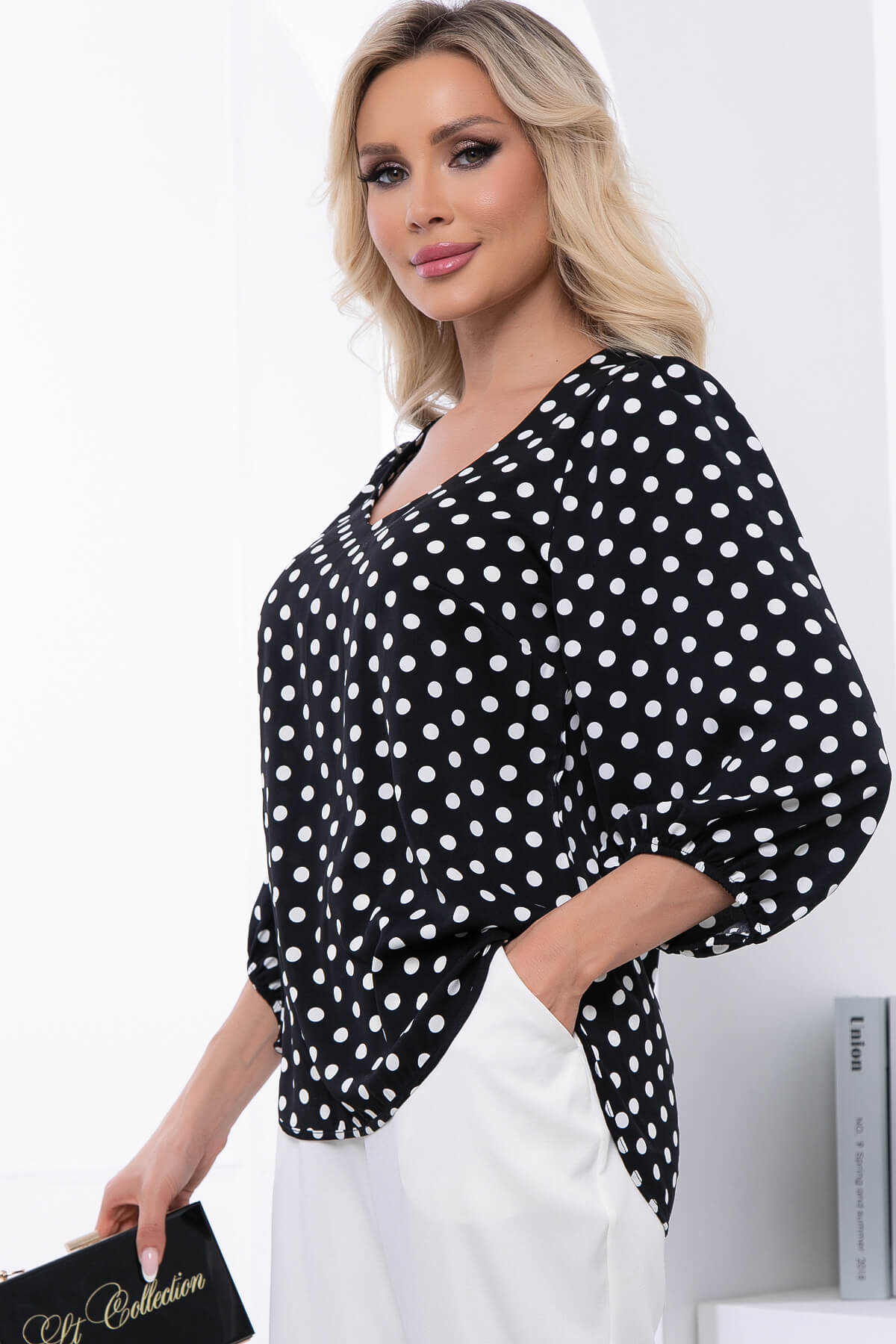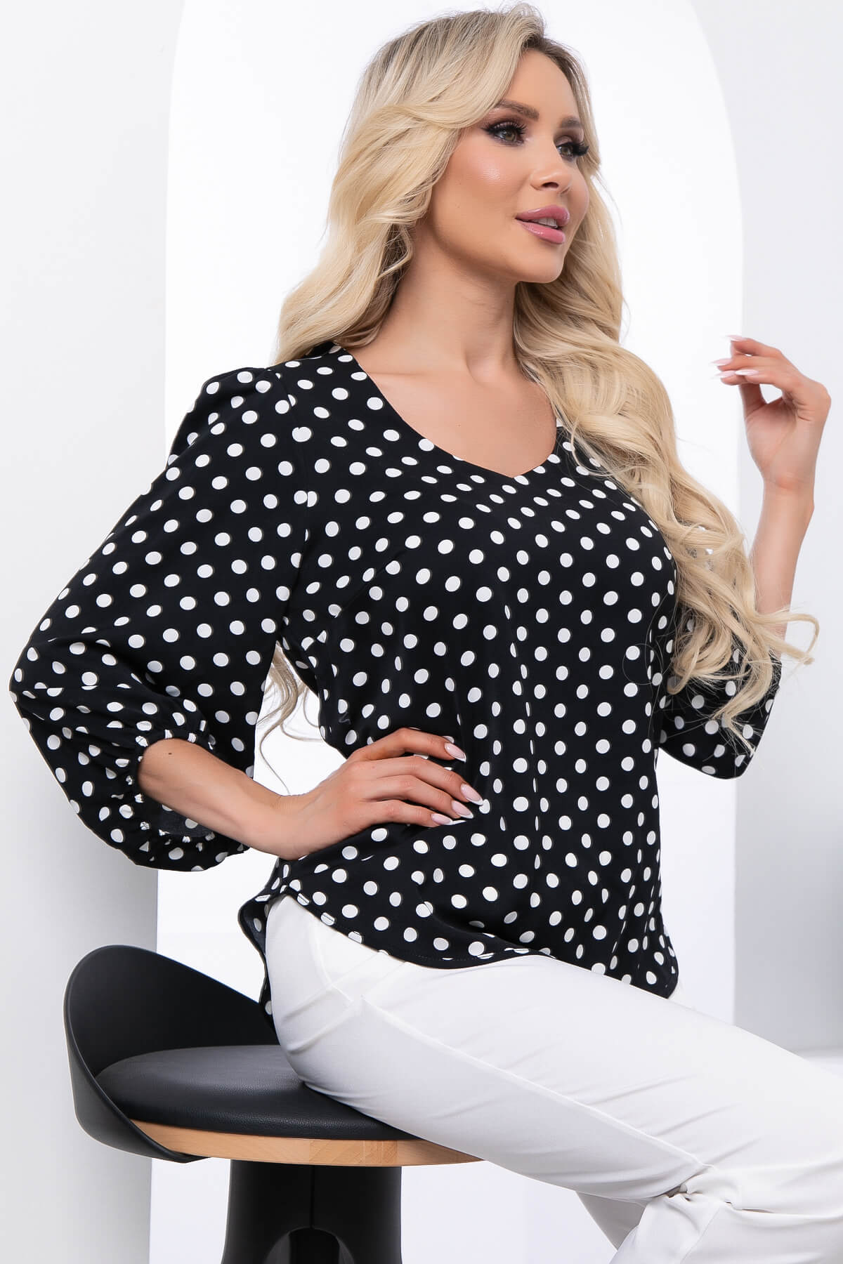 Роскошная блуза - это неотъемлемая часть гардероба, которая подходит для любого случая. Она отлично будет смотреться в повседневно жизни и разнообразит внешний вид на торжественном мероприятии. Мягкий V-образный вырез горловины красиво подчеркнёт зону декольте. Низ блузы закруглён, окантован, спинка удлинена. Рукав втачной, три четверти, по низу на резинке.
