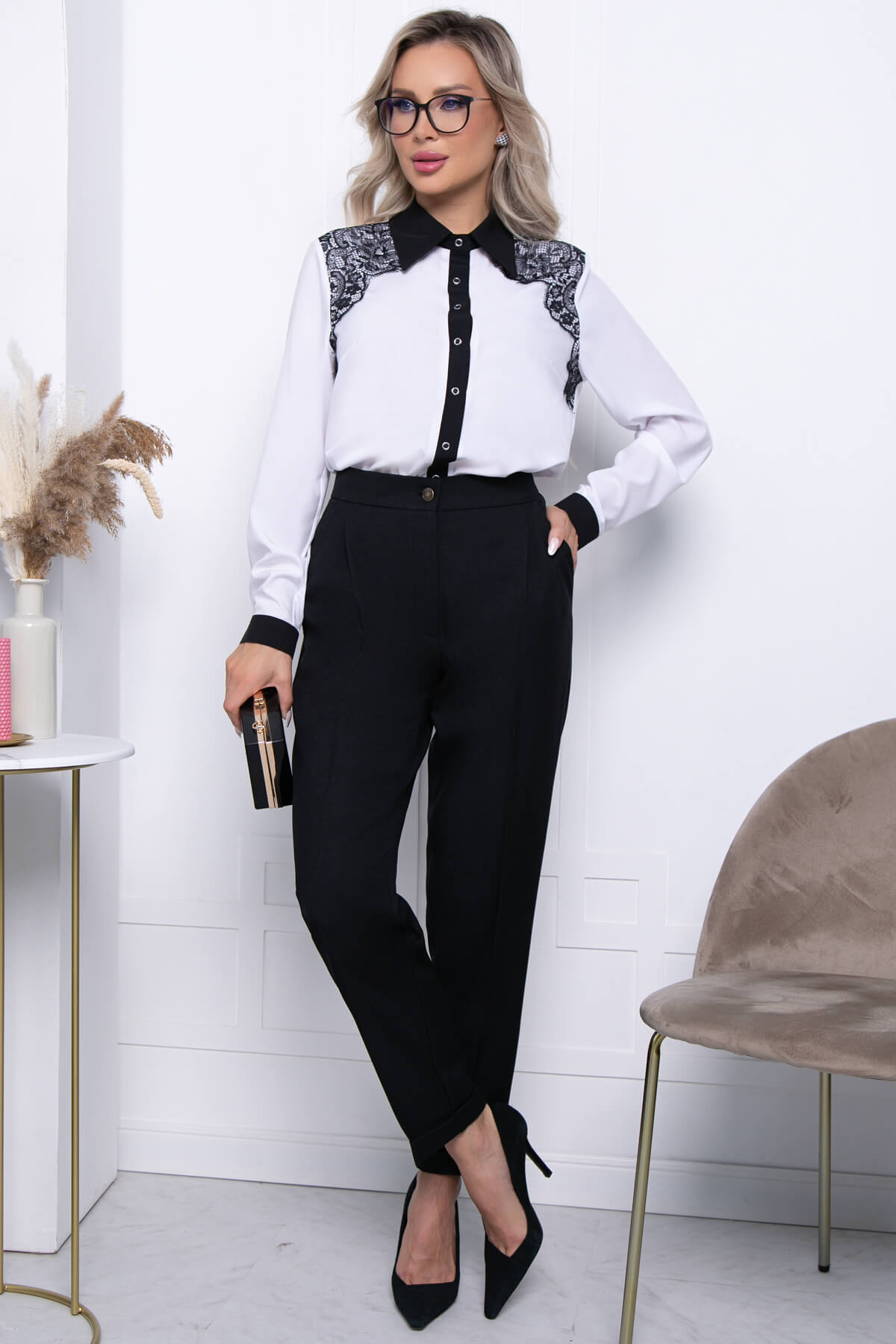 Создайте роскошный образ с невесомой блузой! Такая женственная вещь становится незаменимой при создании лаконичного делового образа. Блуза отлично сочетается с прямыми брюками, джинсами и даже юбками! Рукав длинный, втачной, по низу манжет. Блуза на кнопках, украшена гипюром.