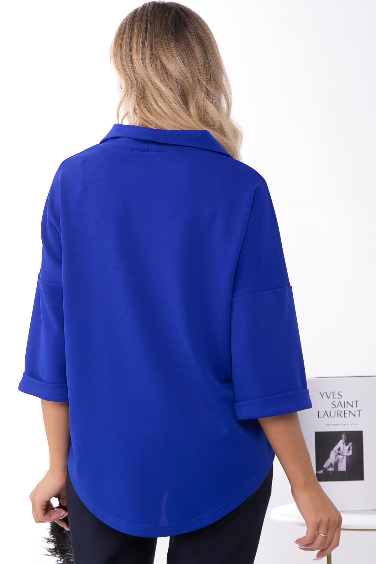 Стильная блуза из трикотажной ткани - это лучший вариант в прохладу! В ней вы будете выглядеть стильно и современно. Изделие свободного кроя с акцентным воротником стойкой с отложным элементом. Рукав цельнокроенный, три четверти.