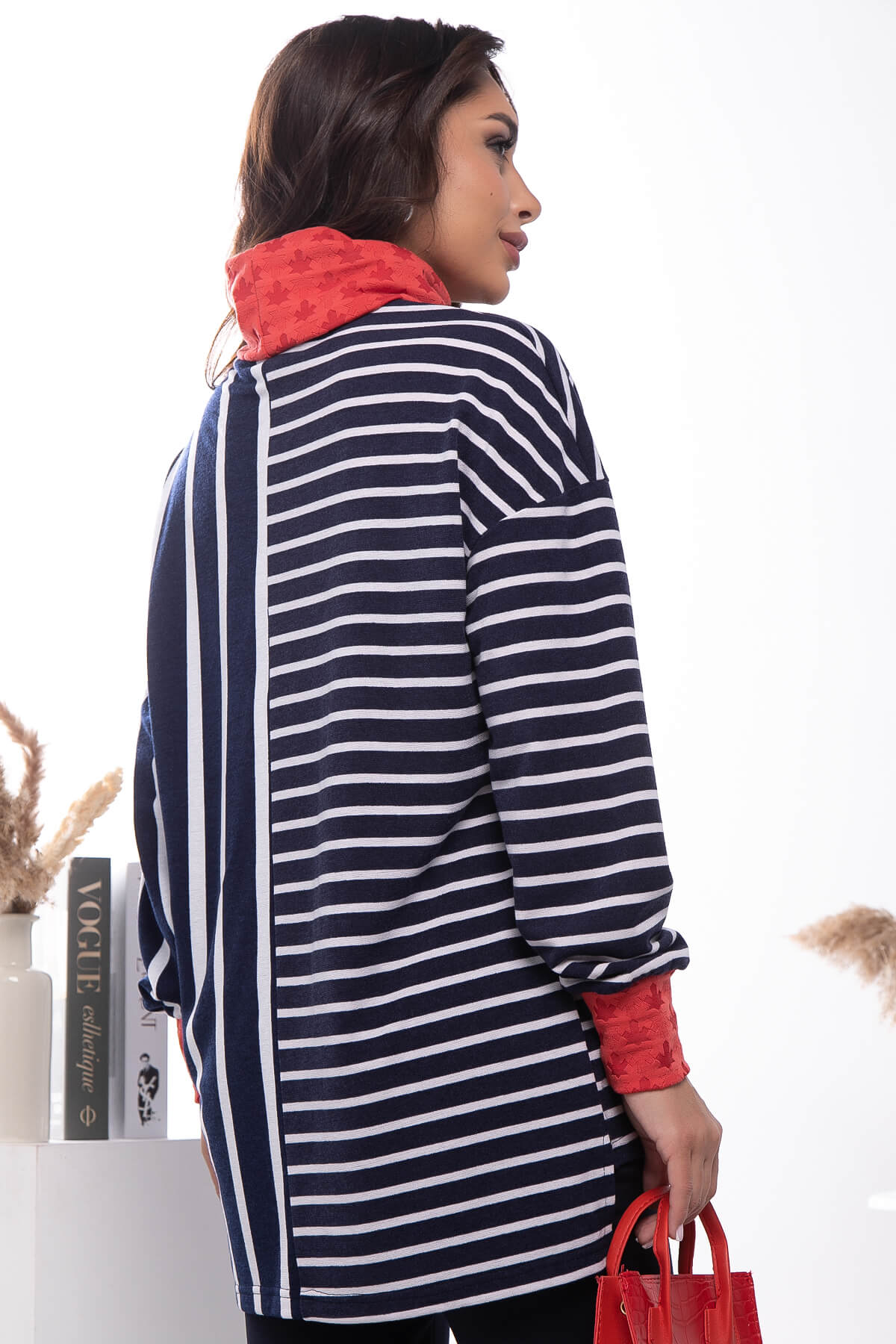 Горловина оформлена воротником "Хомут". По бокам джемпера есть разрезы.