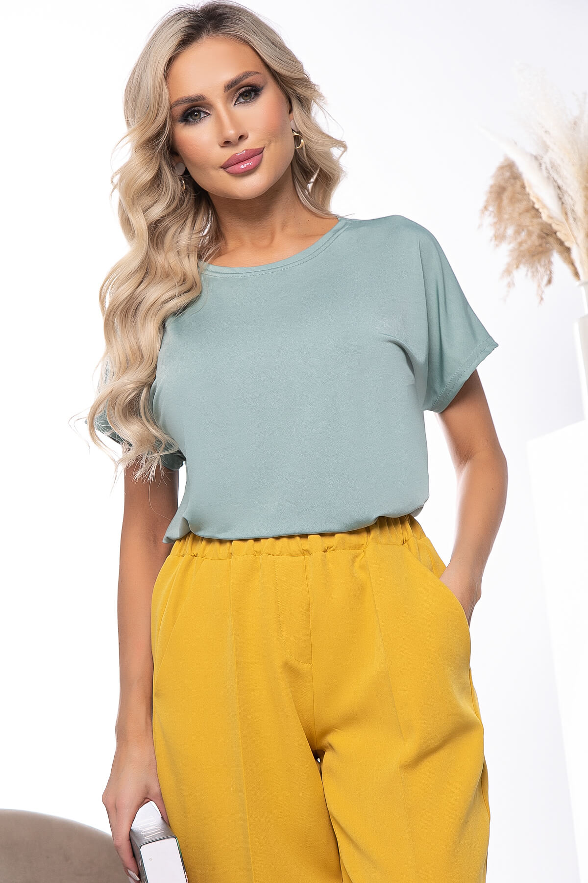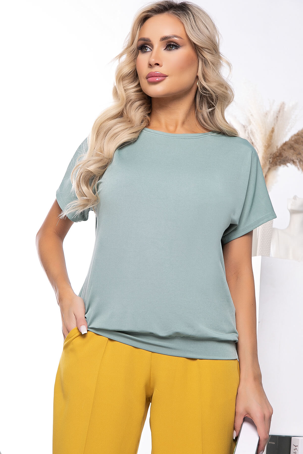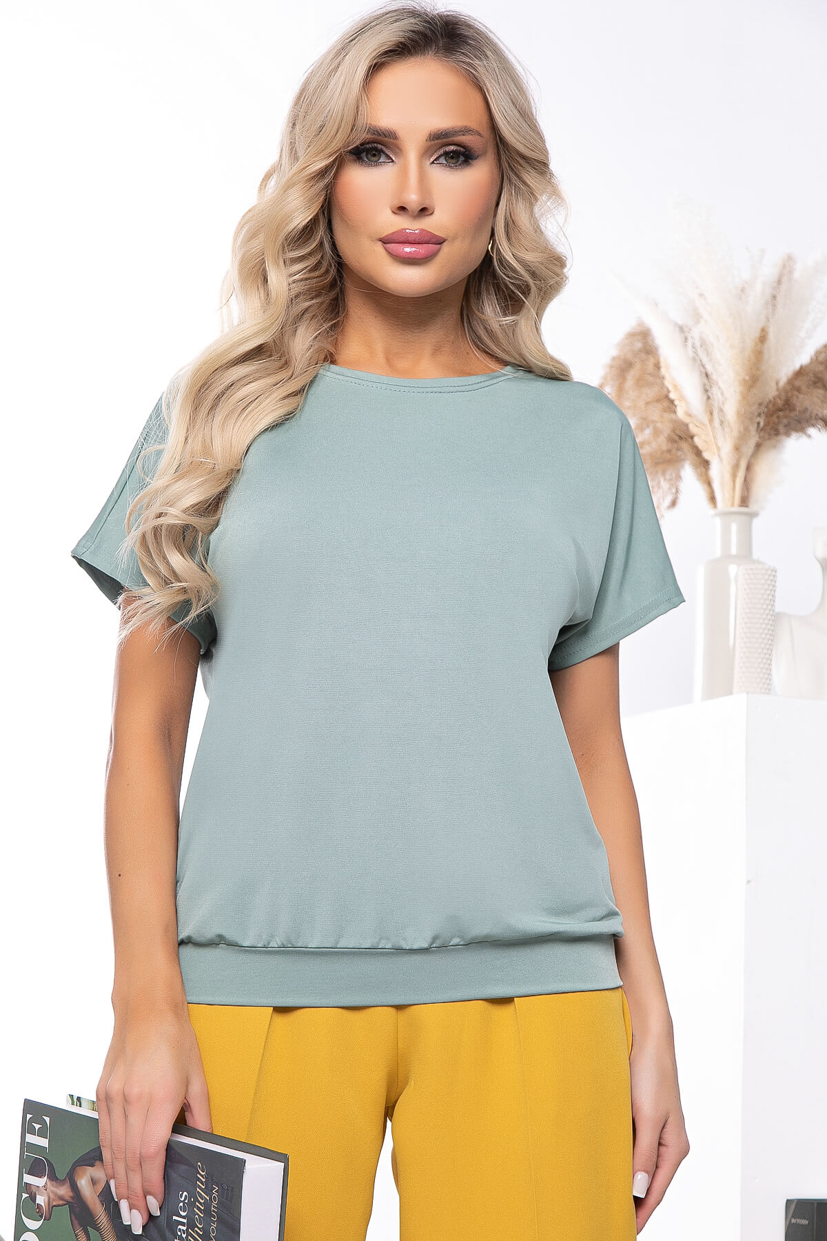 Блуза прямого кроя, вырез горловины округлый. Рукав укороченный, цельнокроенный.