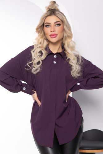 Рубашка свободного кроя в интересной расцветке - идеальный вариант для повседневного образа. Добавив к ней яркие аксессуары, она способна стать акцентной деталью вашего праздничного образа. Рукав длинный со спущенным плечевым швом, по низу манжет. Рубашечный воротник украшают функциональные пуговицы. На манжете рукава и по низу изделия вшиты потайные функциональные кнопки.