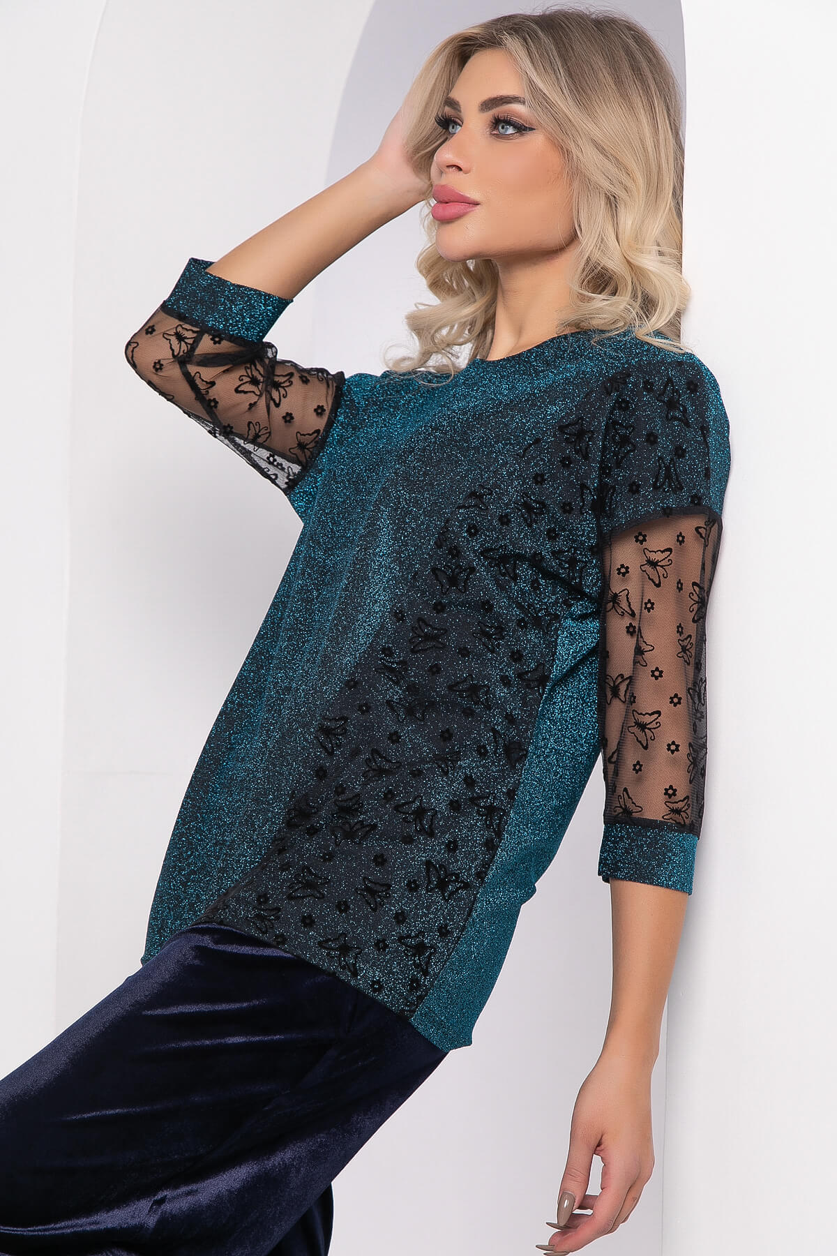 Джемпер с люрексом считается одним из самых трендовых предметов одежды. Вещи из блестящих тканей буквально покорили модниц всего мира. Изделие украшают свободные рукава из сетки с принтом. Изделие отлично смотрится с брюками и юбками. Оно отлично подходит по любой праздничный вечер!