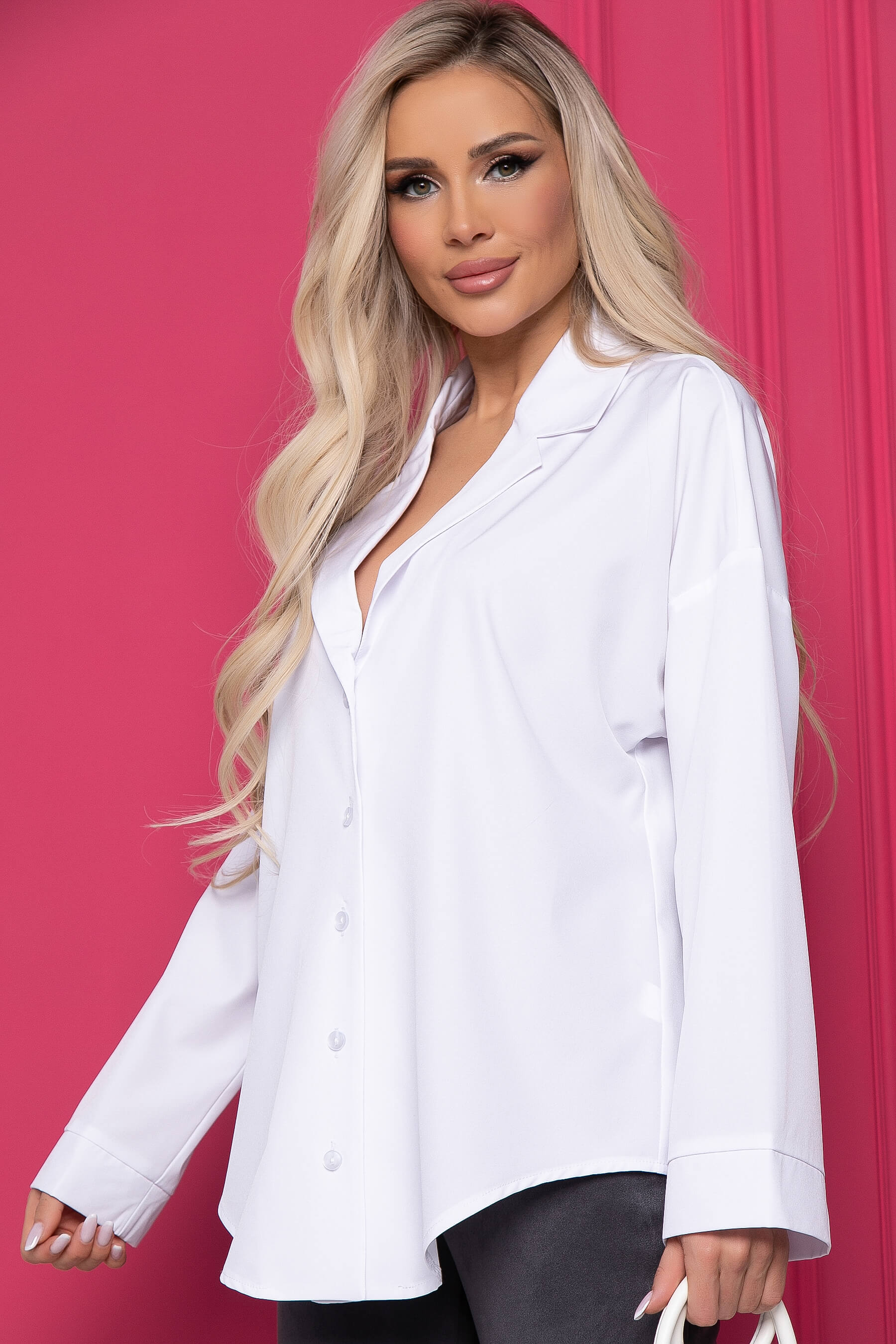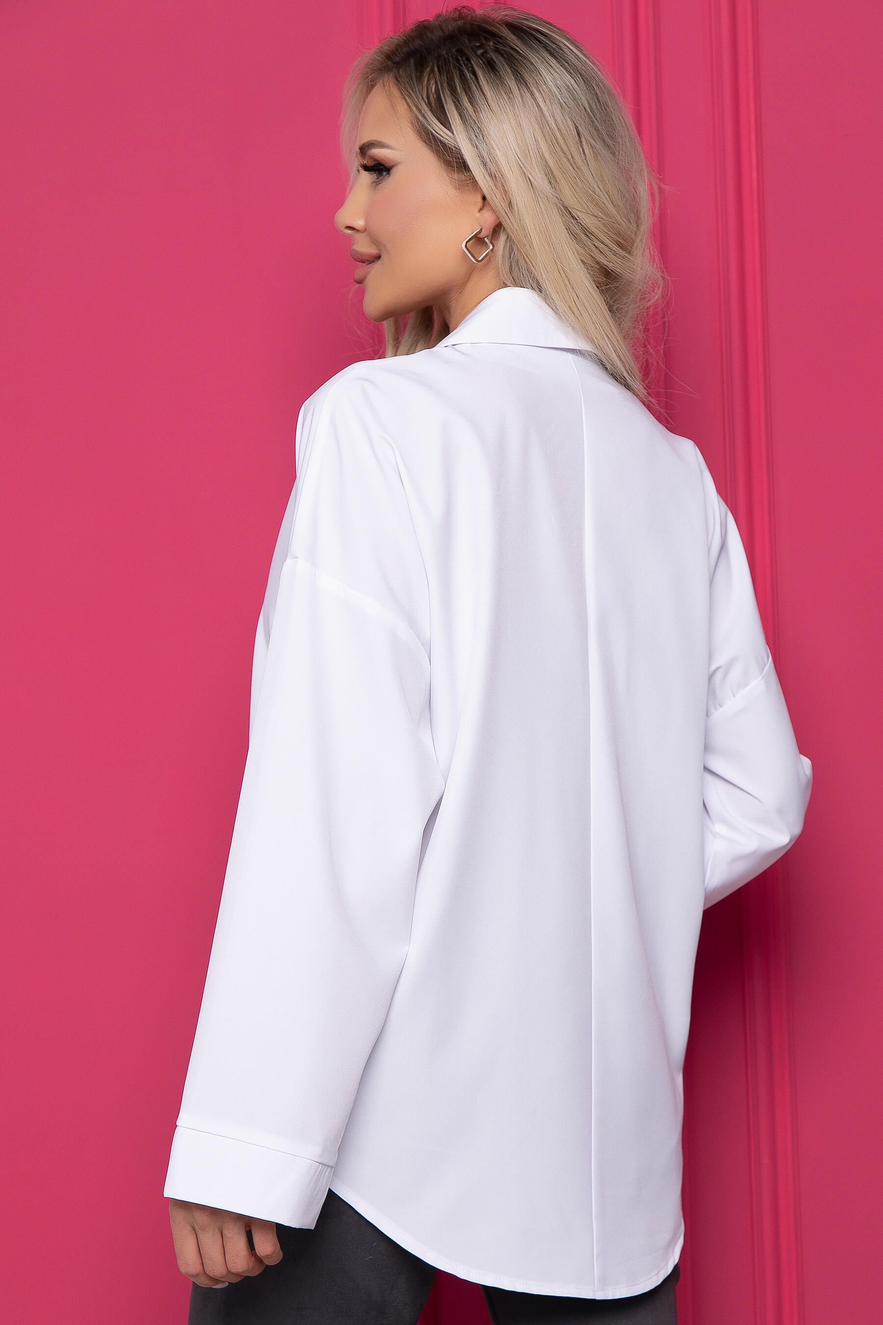 Стильная рубашка придаст яркости и эффектности вашему образу. Свободный крой рубашки обеспечивает максимально свободную посадку по фигуре. С такой моделью можно создать и официально-деловой образ, и расслабленный. Рубашка имеет длинный, широкий, втачной рукав со спущенной линией плеча. Свободный крой изделия позволит скрыть недостатки фигуры.