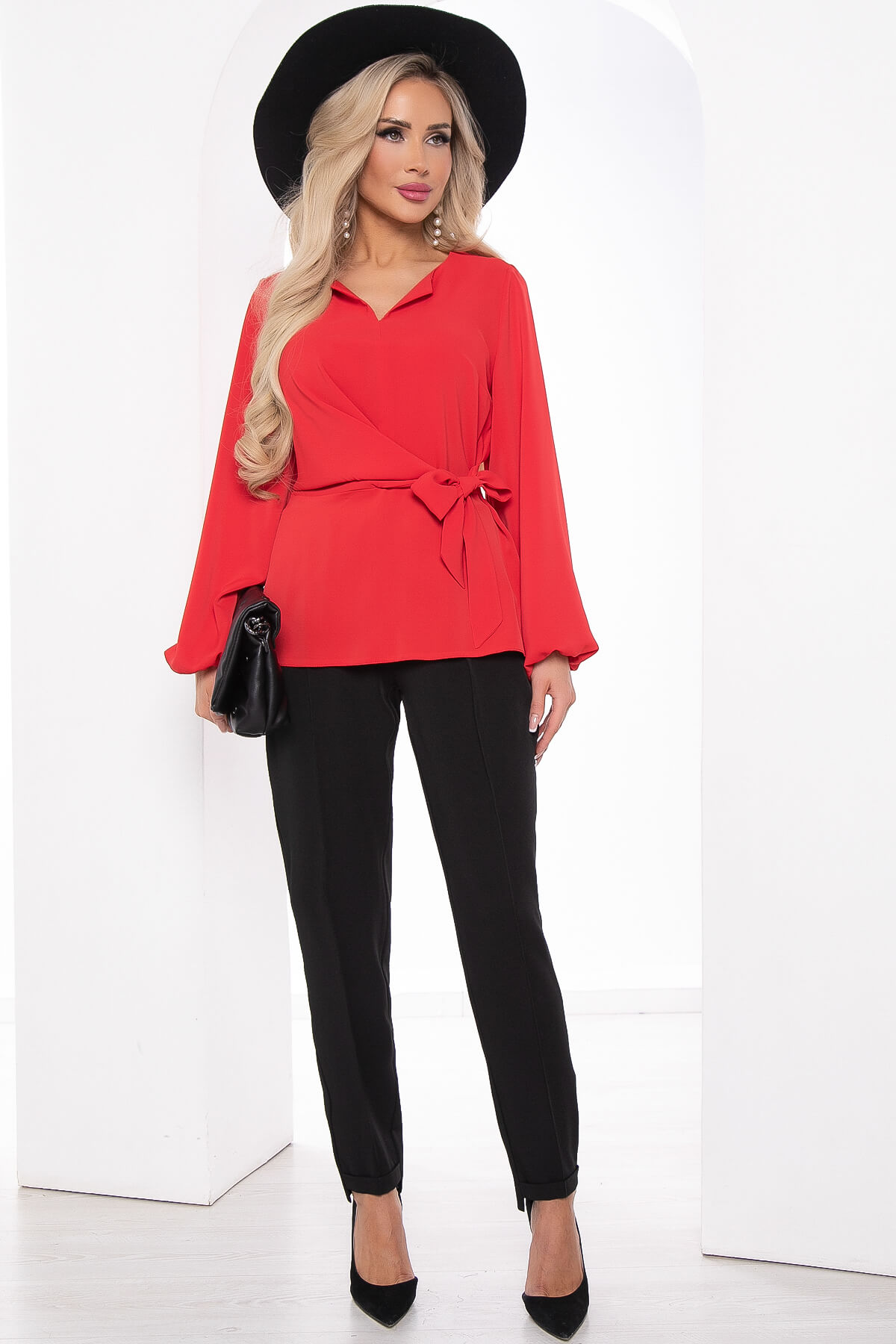 Блуза свободного силуэта, выполненная из приятной к телу ткани в ярком цвете, который хорошо будет сочетаться с Вашим гардеробом. Рукав втачной, длинный, низ рукава на резинке. При помощи такой блузы Вы с лёгкостью сможете украсить свой офисный образ. Вырез округлый с акцентным разрезом. Особый шарм придает втачной пояс.