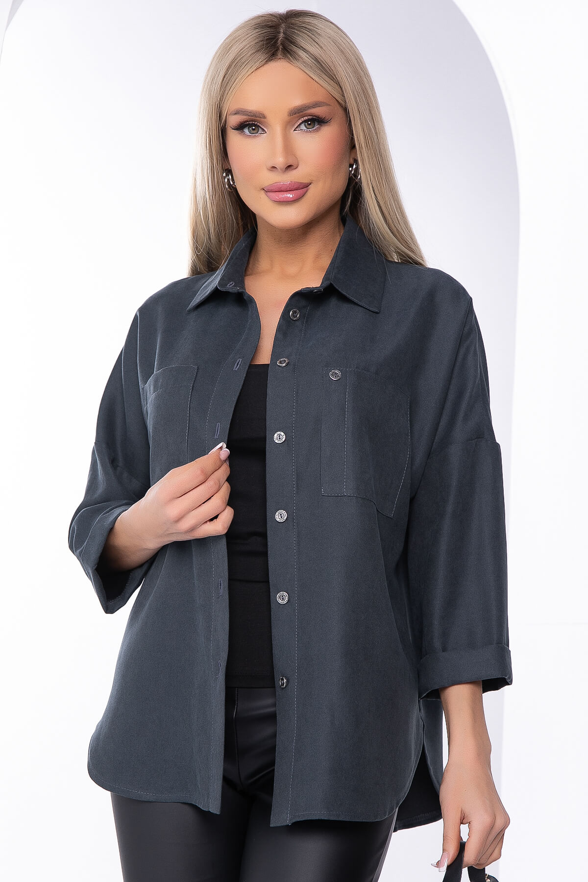 Рубашка из микровельвета (темно-серая) Б8276