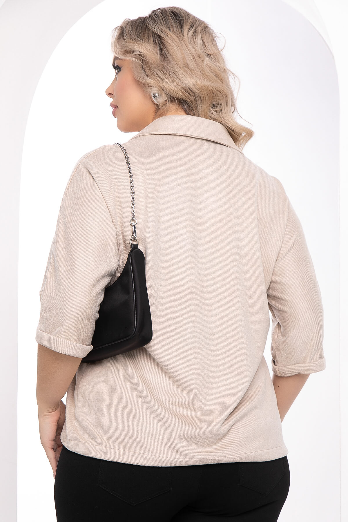 Туника из трикотажа подойдёт для создания повседневных образов. Туника имеет приятный бежевый оттенок, который является универсальным базовым цветом для повседневного и делового гардероба. Рукав цельнокроенный, по низу манжен из основной ткани. Вороник рубашечного типа на стойке. По низу изделия шнурок из основной ткани.