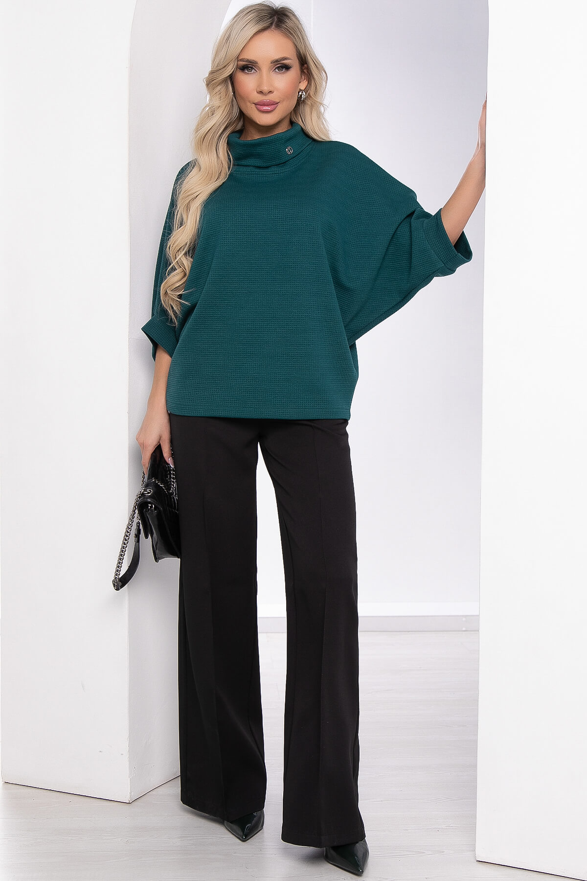 Самые непредсказуемые ансамбли и живописные образы позволяет создать джемпер, вписывающийся в самые разнообразные стили. Удобное, практичное, функциональное изделие позволит сочетать его с разнообразным низом, а мягкий трикотаж подарит комфорт в прохладную погоду. Джемпер имеет акцентную горловину с брошью, которая украшает лаконичный фасон и рукава скроенные по типу "Летучая мышь". Свободный крой позволит скрыть недостатки фигуры.