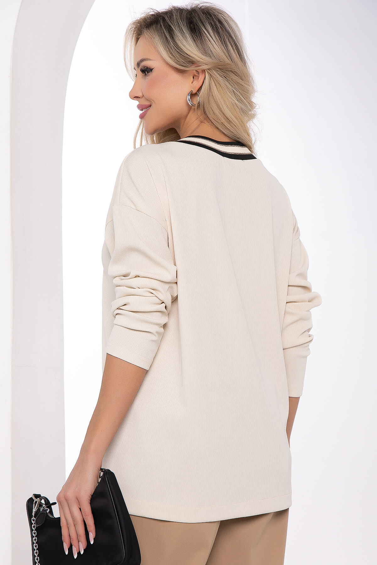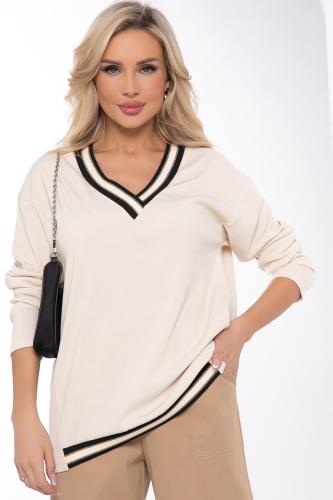 Очаровательный джемпер с соблазнительным V-образным вырезом.с люрексной нитью. Низ изделия декорирован такой же вставкой как на горловине, которая придает образу спортивный стиль. Джемпер имеет длинный втачной рукав. Такой джемпер с нежной расцветкой отлично будет смотреться как с джинсами, так и с брюками.