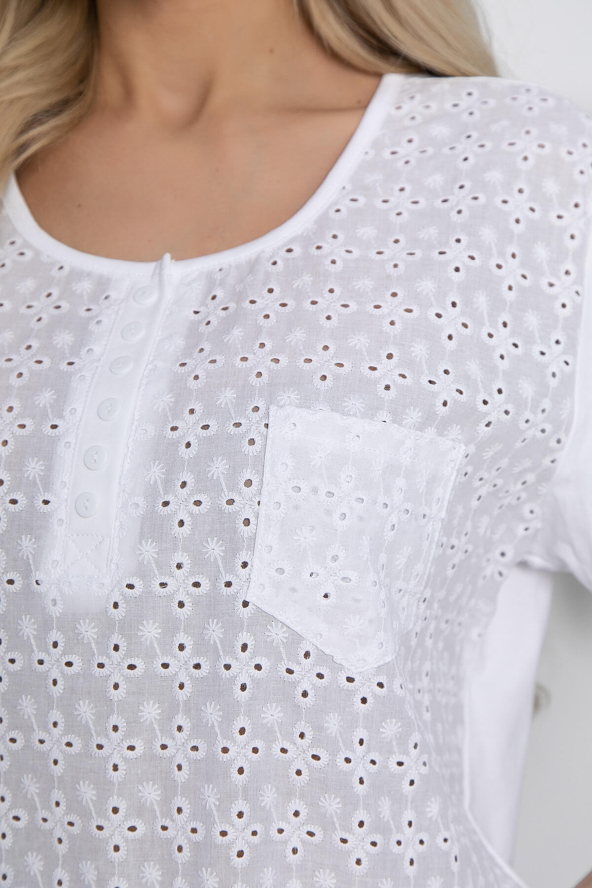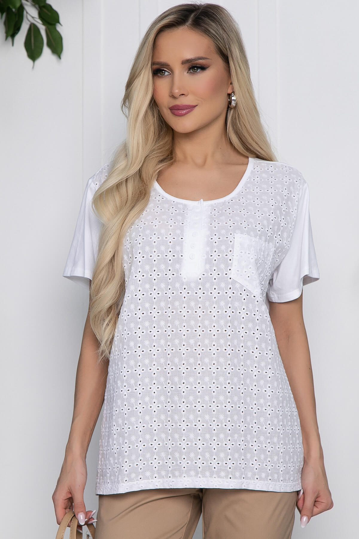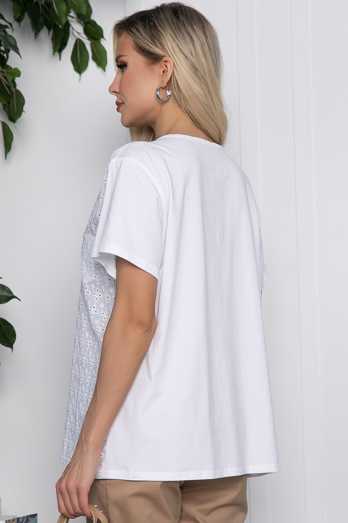 Своей легкостью и комфортностью блузка на лето будет идеальным сопровождением для вашего отдыха на свежем воздухе, на прогулке по городу или в отпуске. Спереди ткань из шитья добавит вам стиль и элегантность.