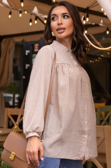 Блузка из марлевки — превосходный вариант для летнего гардероба. Она лёгкая, воздухопроницаемая и приятная на ощупь, что делает её идеальным выбором для жаркой погоды. Модель имеет кокетку спереди и сзади, а также изящную драпировку в этих же областях. Рукав длиной 7/8 завершается манжетом.