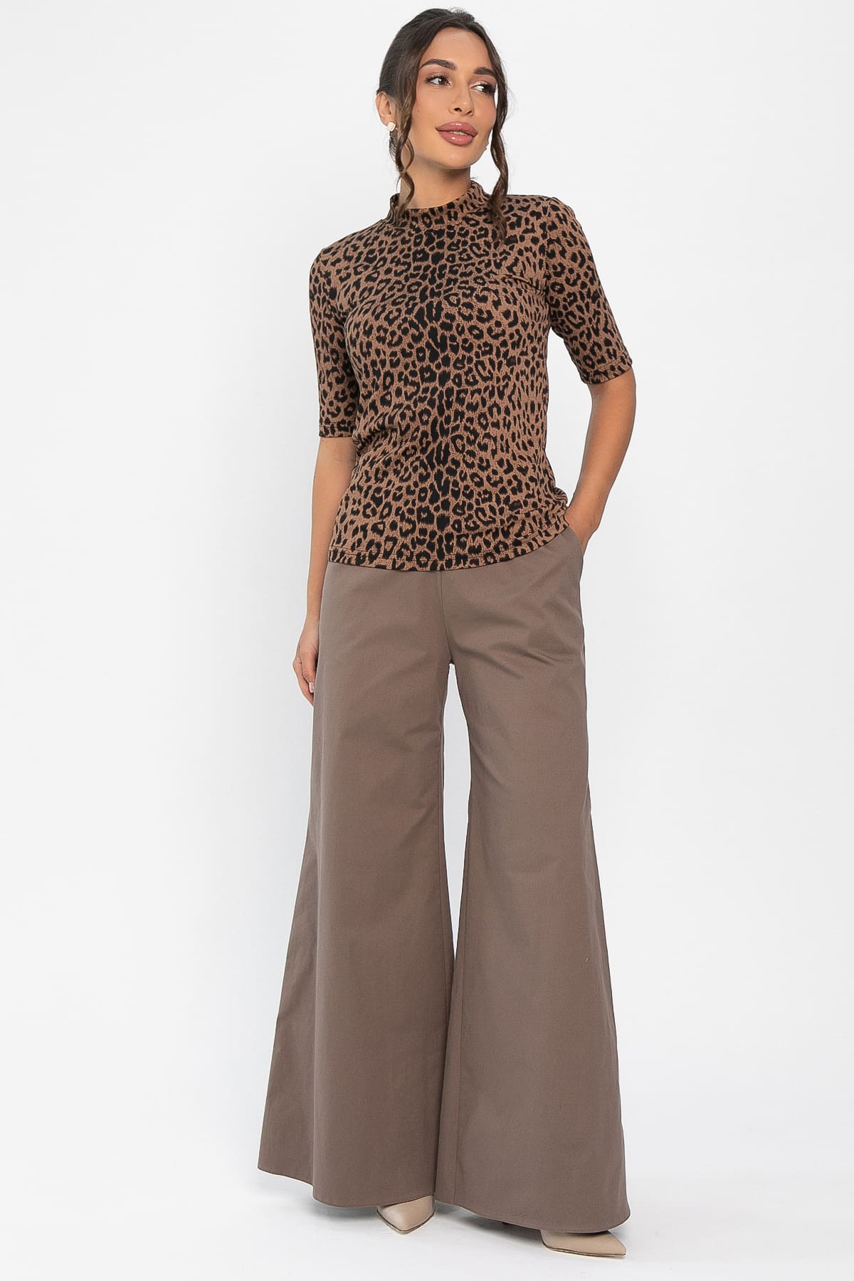 Леопардовая блузка в черно-коричневой расцветке из мягкого трикотажа — это отличный выбор для тех, кто хочет придать своему образу игривости и свежести. Её стильный принт с анималистичным рисунком добавляет дерзости и выразительности, становясь ярким акцентом в гардеробе. Эта блузка прекрасно подходит для создания повседневных образов и легко сочетается как с джинсами, так и с шортами. Она станет незаменимым элементом гардероба для прогулок, отдыха на природе и повседневной носки.