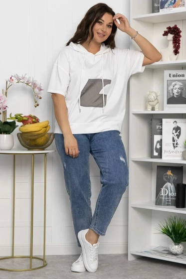 Блуза свободного кроя с капюшоном — это модель, которая сочетает в себе комфорт и практичность. Она станет отличным выбором как для повседневного образа, так и для активного отдыха на природе. Свободный крой и спущенный рукав придают образу непринуждённый и свободный вид. Функциональный карман по переду украшен пуговицей, что придает образу оригинальности.