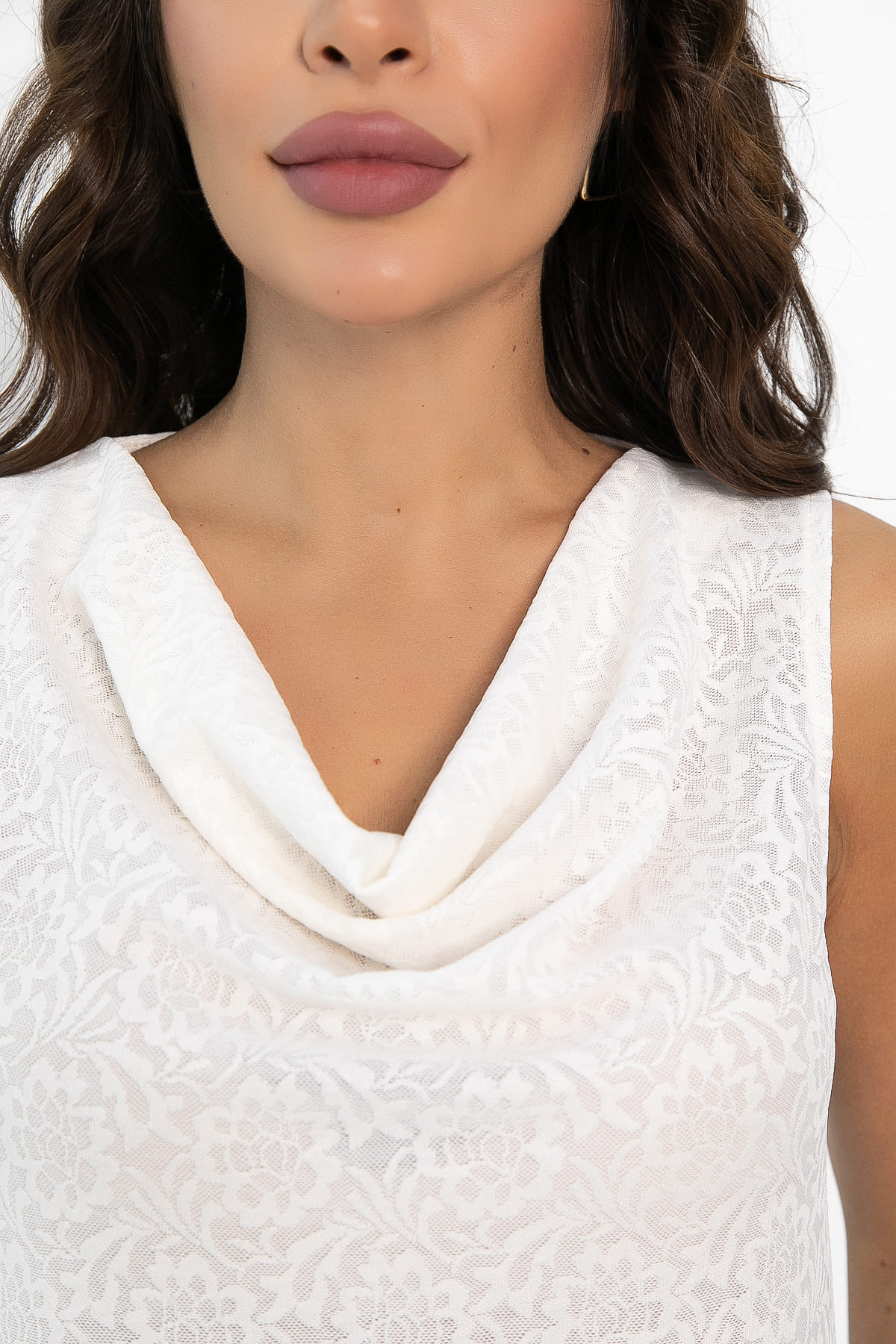 Топ из кружевного трикотажа (жаккард) в нежном молочном оттенке — это изысканное дополнение к вашему гардеробу. Этот топ без рукавов с прямым низом и без разрезов подойдёт как для офиса, так и для повседневных образов. Приталенный силуэт подчеркнёт вашу фигуру, а стильная горловина в форме качелей добавит образу особого шарма. Наденьте топ с любимой юбкой-карандаш или джинсами, дополните образ аксессуарами и почувствуйте себя уверенно и привлекательно.