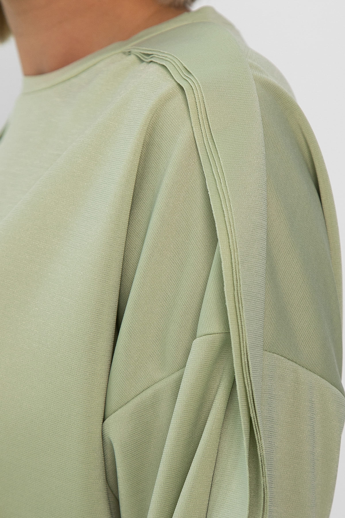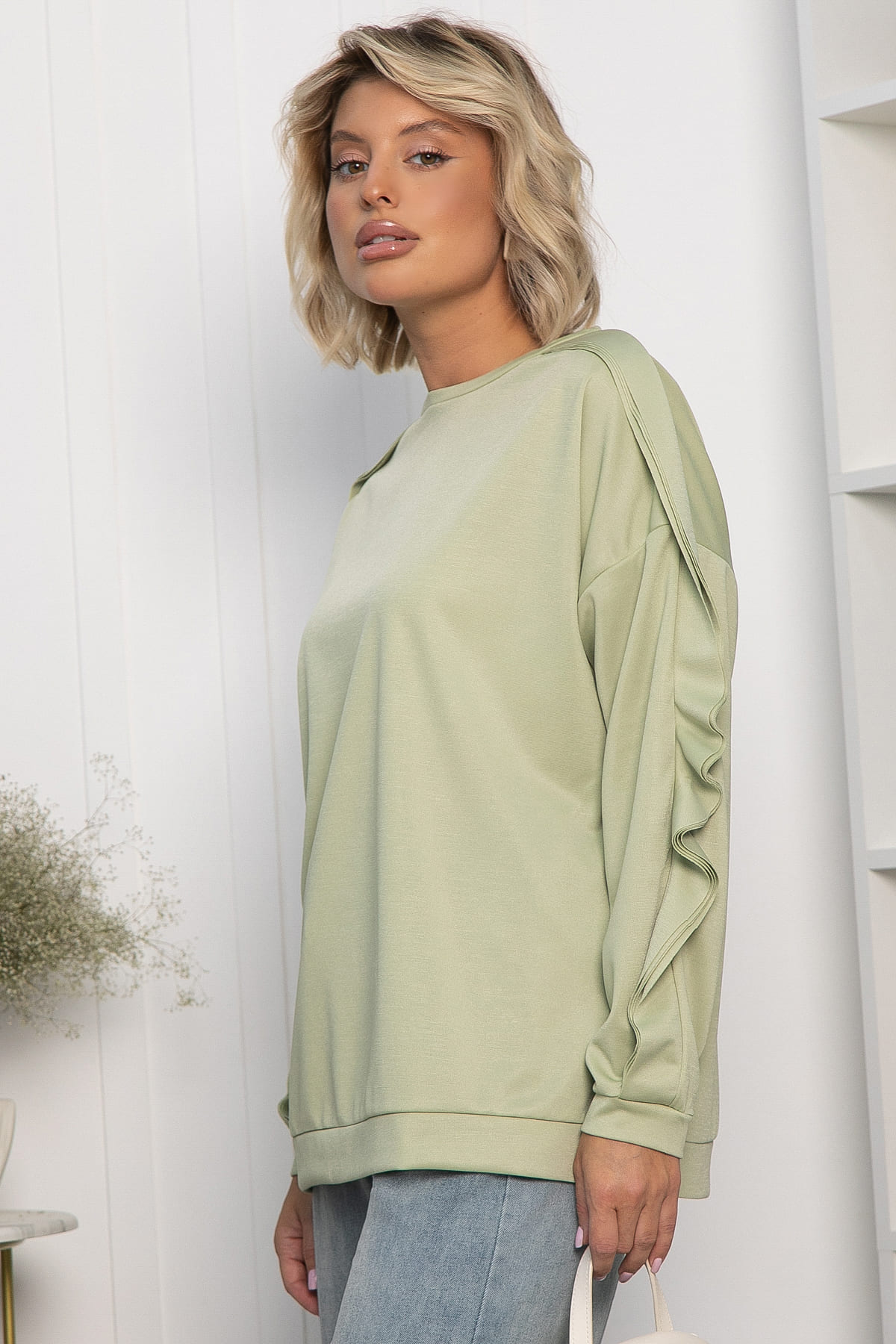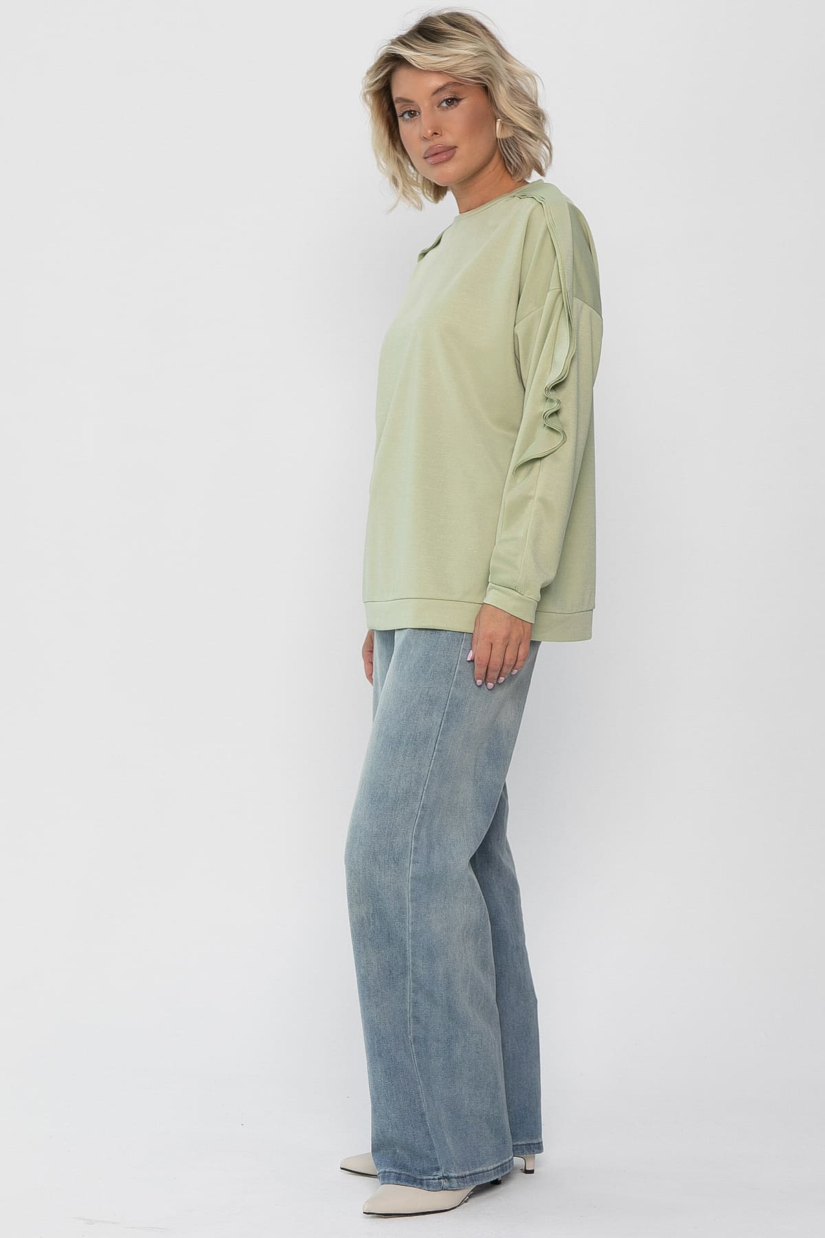 Стильный и выразительный джемпер — это то, что нужно для вашего гардероба. Он добавит изюминку в ваш образ и сделает его неповторимым. Этот универсальный джемпер без лишних деталей, таких как принты, надписи или вышивка, подойдёт к любому стилю. Особенность модели — воланы по всей длине рукавов. Они придают джемперу игривость и оригинальность.