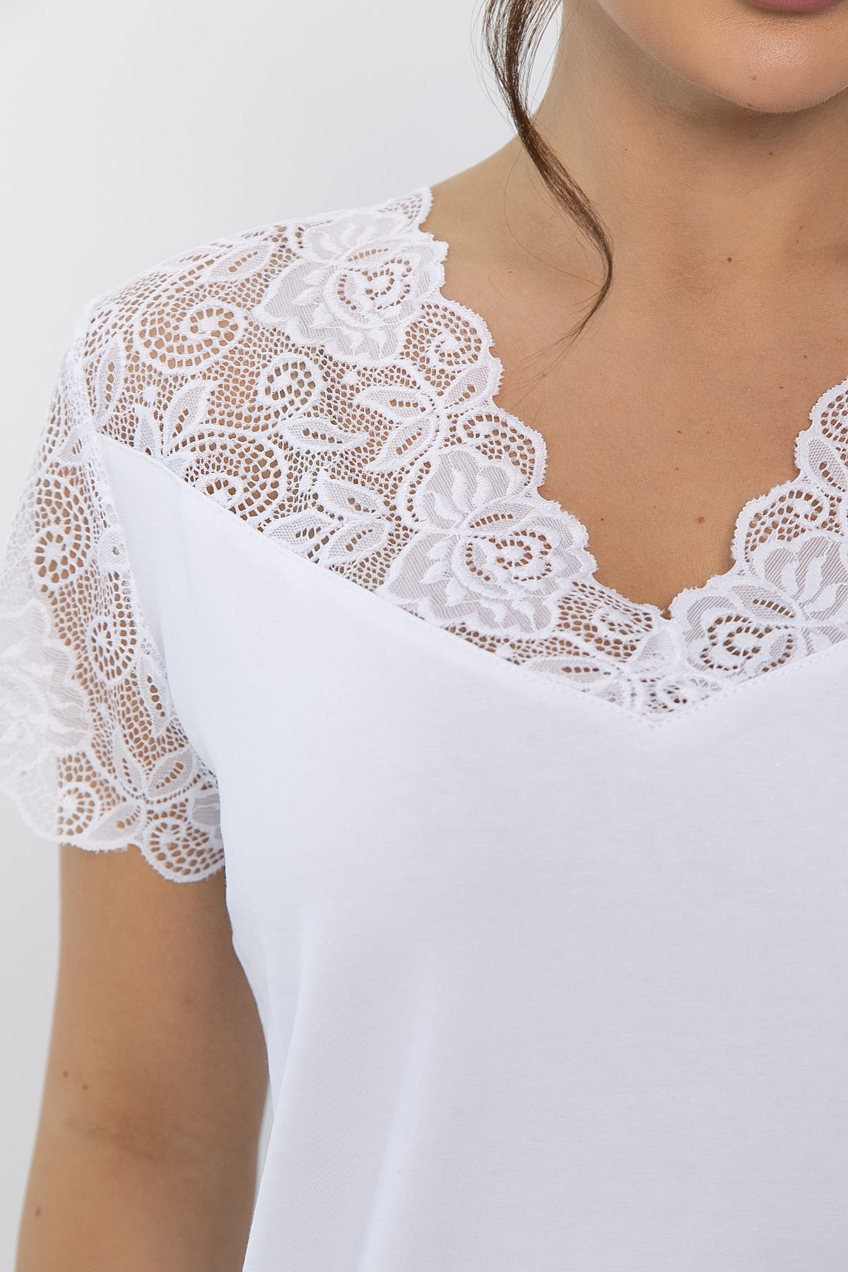 Блузка с изящными кружевными деталями — это превосходный выбор для тех, кто хочет выглядеть элегантно и чувствовать себя комфортно. Рукав блузки укороченный, выполнен из кружева. Горловина имеет V-образную форму. Блузку можно носить как самостоятельный элемент, так и комбинировать с жакетами, кардиганами или пиджаками. Этот универсальный элемент гардероба прекрасно подходит для деловых брючных костюмов, юбок-карандаш, джинсов и вечерних нарядов. Он добавит вашему образу изысканности и уверенности.