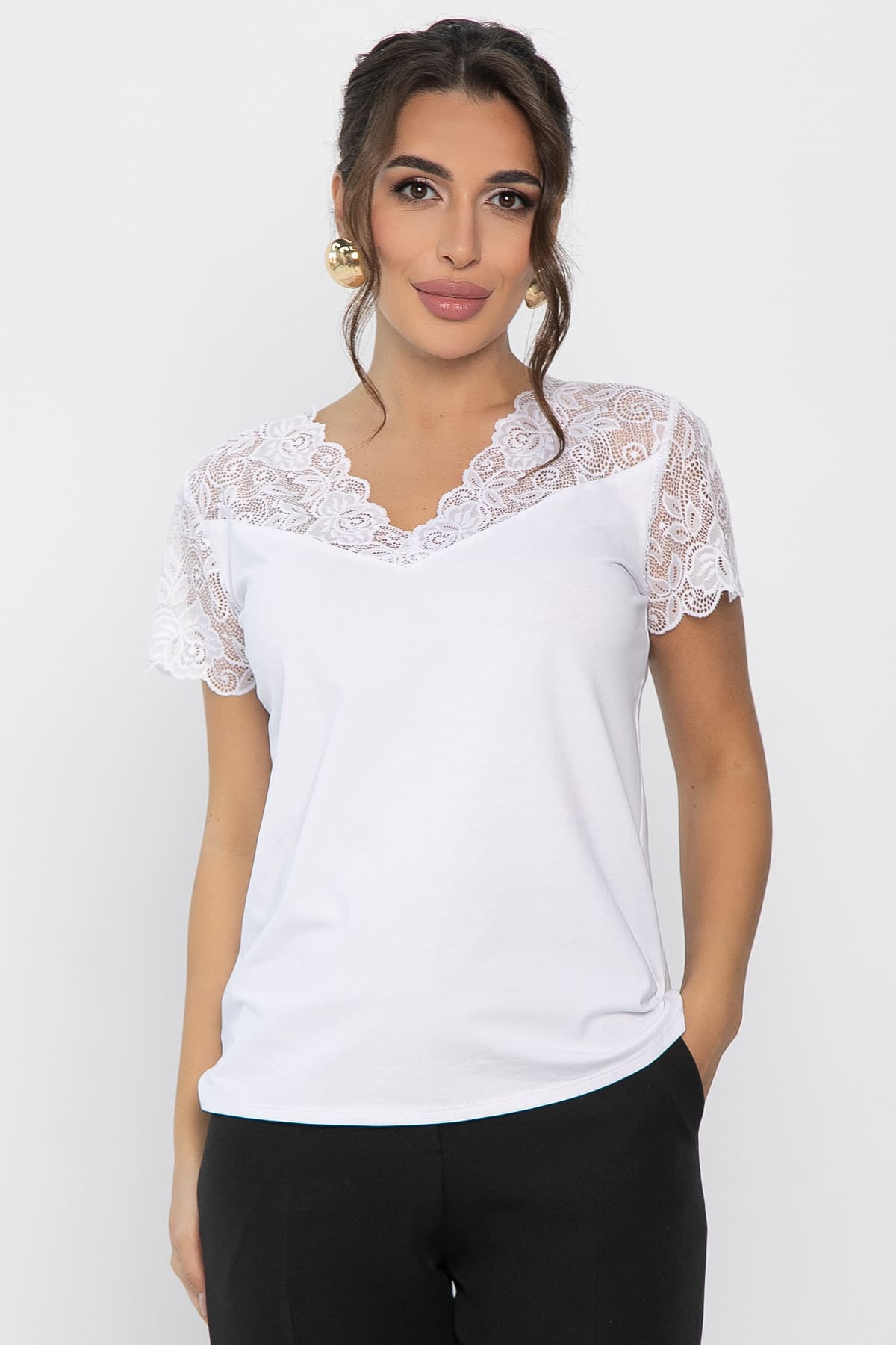Блуза с кружевом Инь-Янь (белая) Б14256-18М