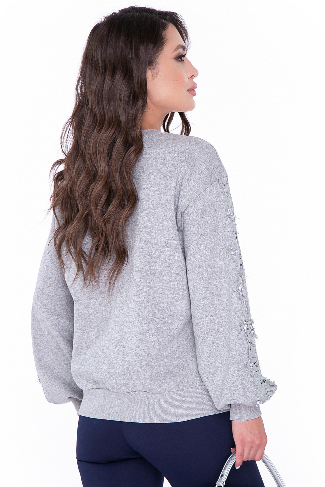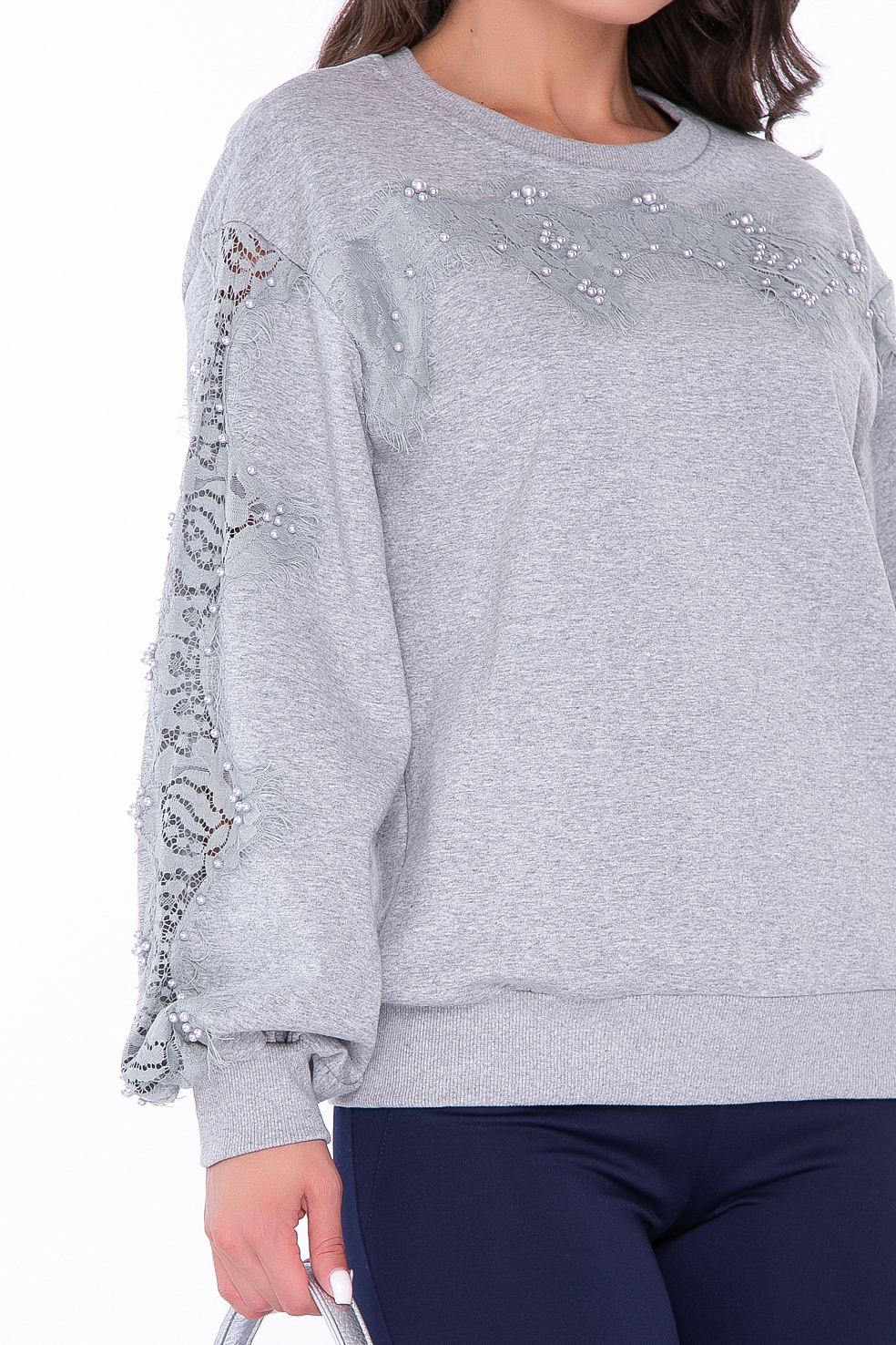 - Рукав длинный, декорирован кружевной вставкой и бусинами, на манжете;