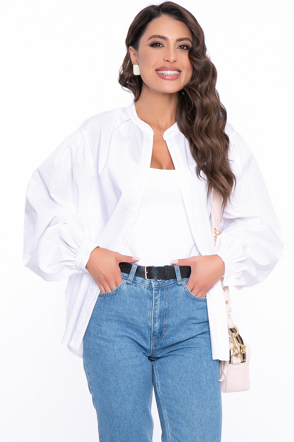 Рубашка с объёмными рукавами "Эльза" (белая) Б2721