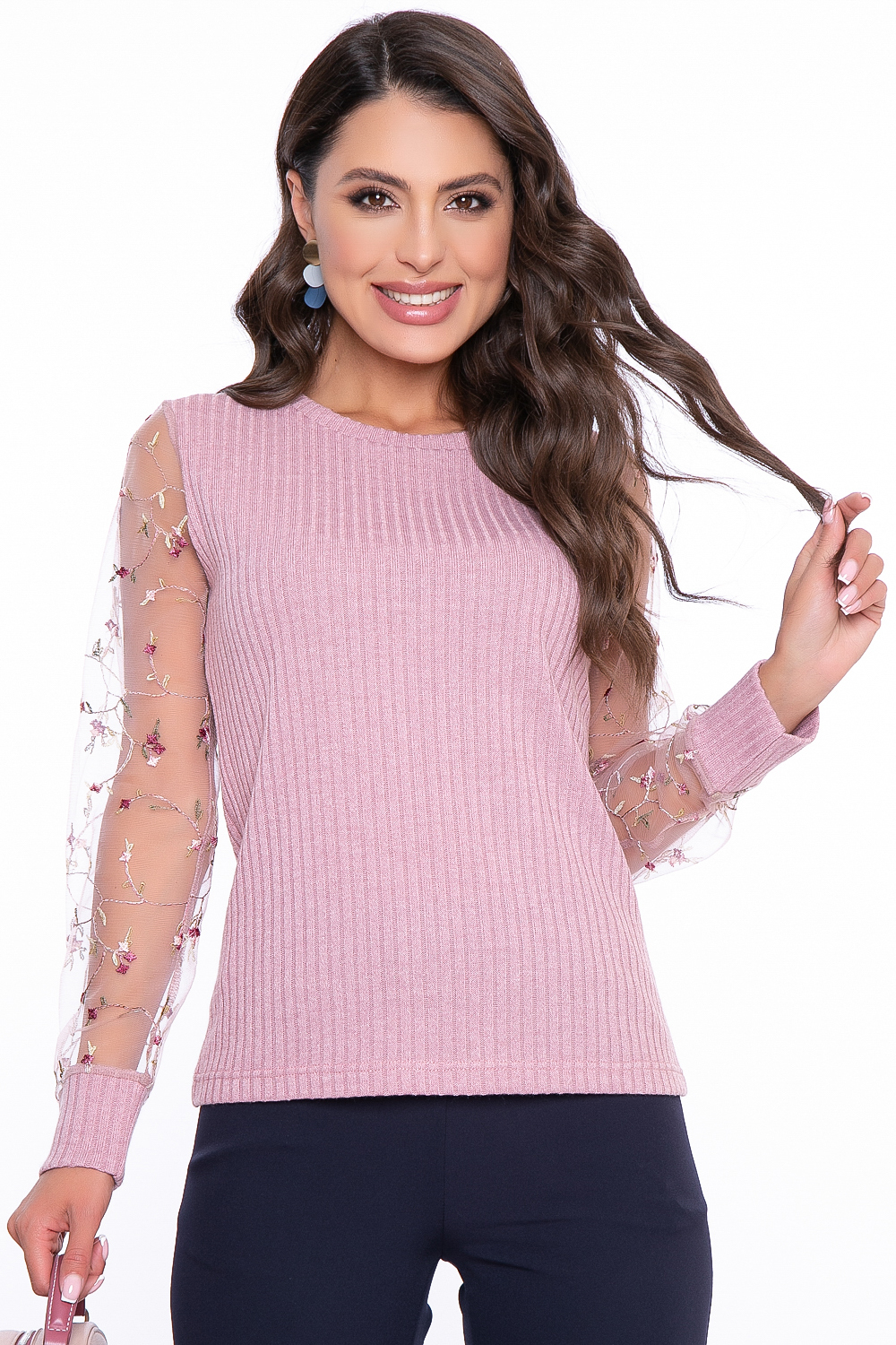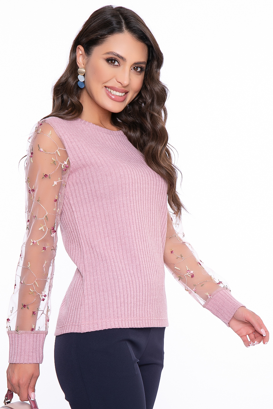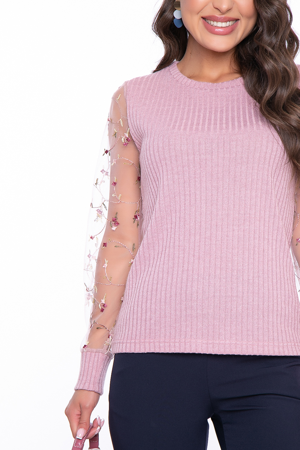 - Рукав выполнен из сетки с вышивкой в виде мелких цветков в тон джемпера;