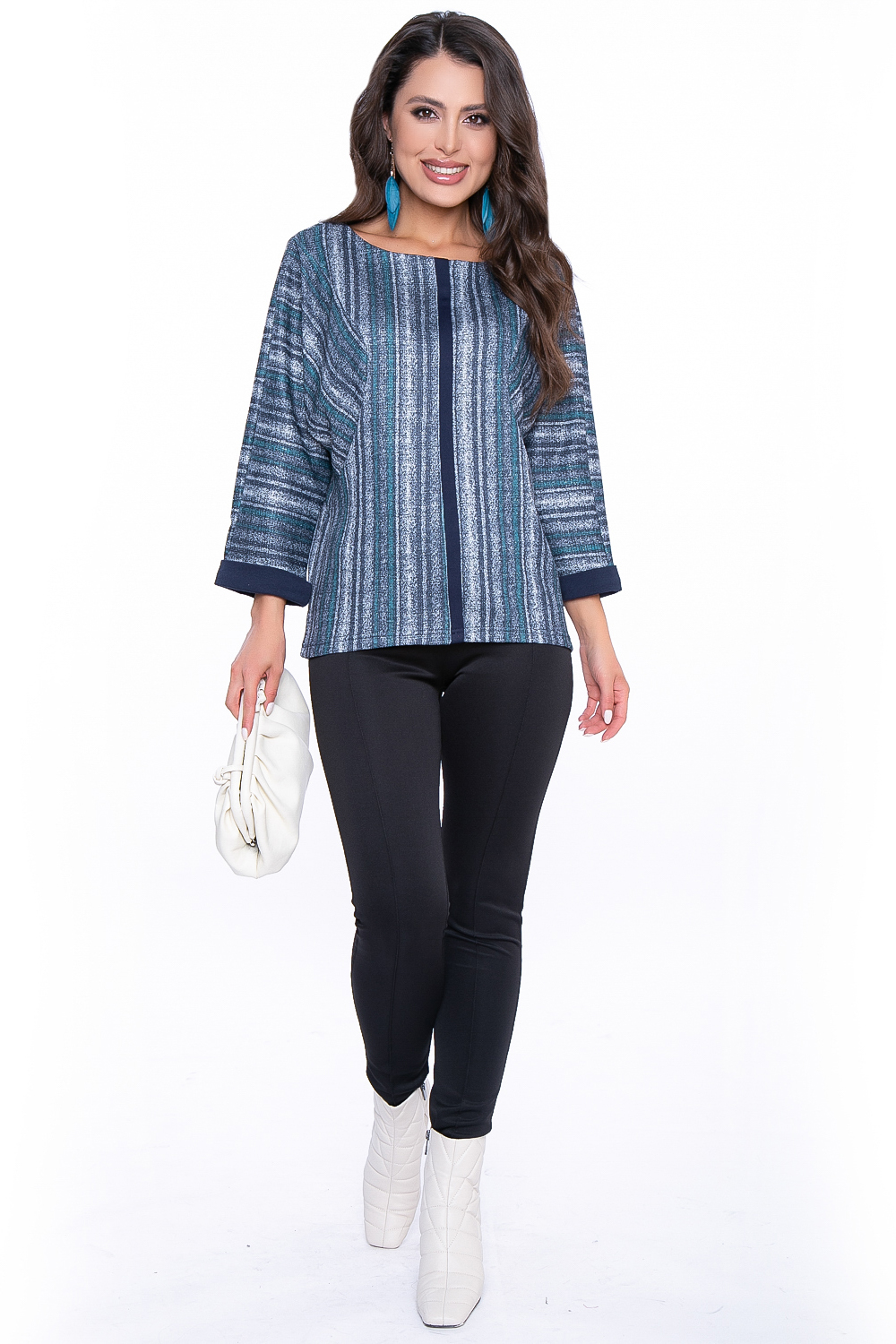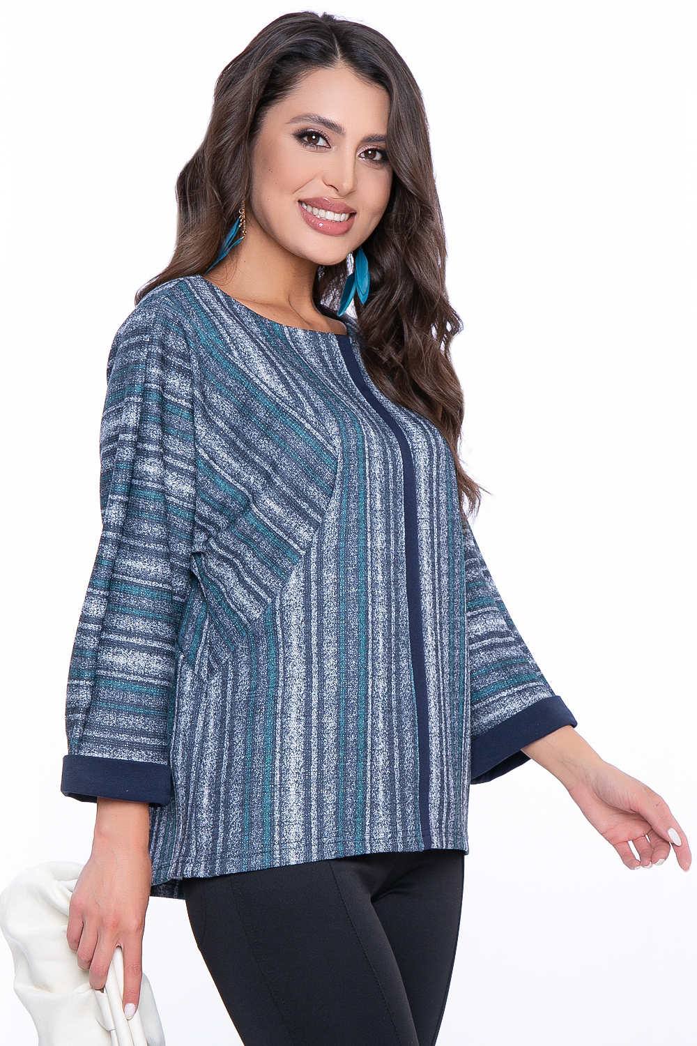 - Джемпер из мягкого трикотажа, свободного силуэта с фигурными рельефами;