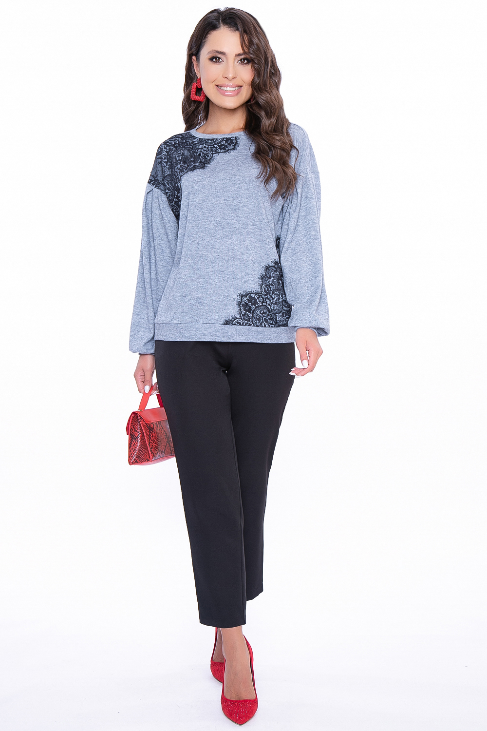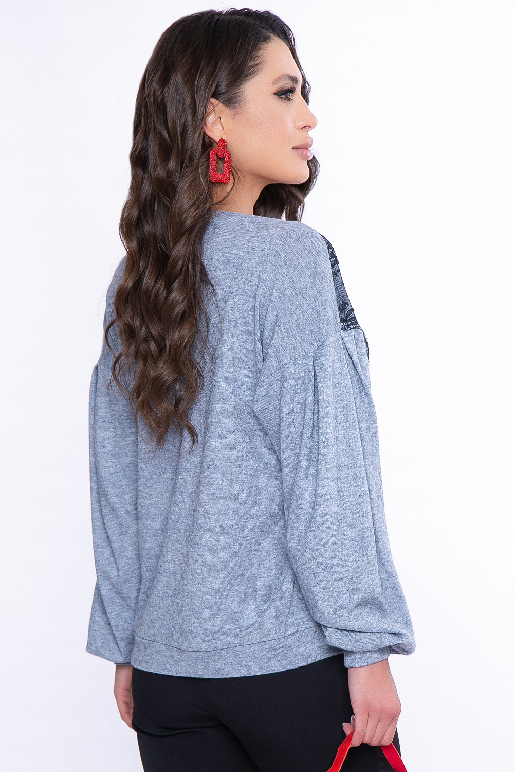 Джемпер с кружевом "Софи" (серо-голубой) Б2764