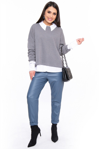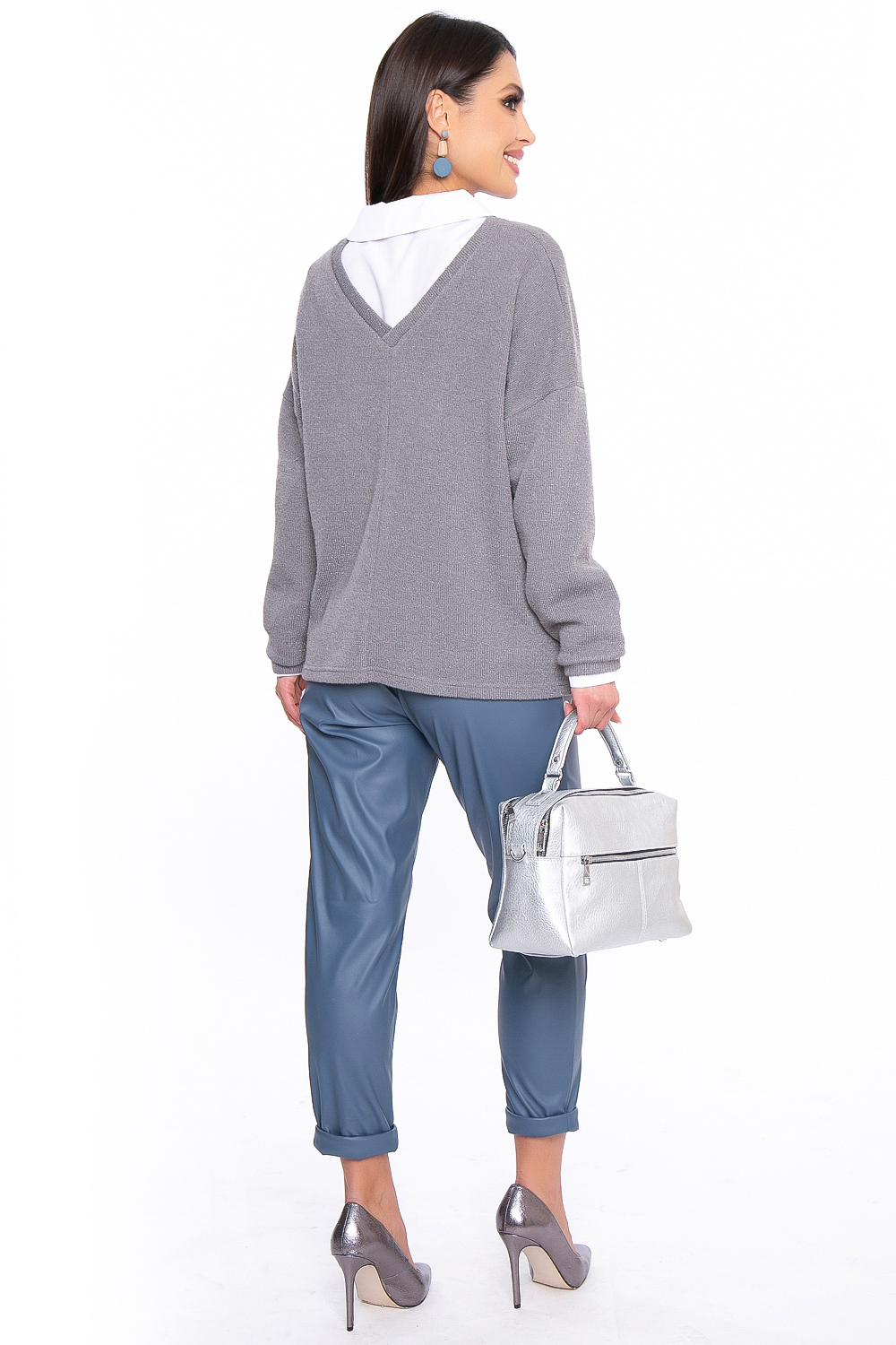 - Дизайнерский джемпер свободного кроя с акцентной горловиной. По переду выполнен округлый вырез, по спинке переходит в V-образный;
