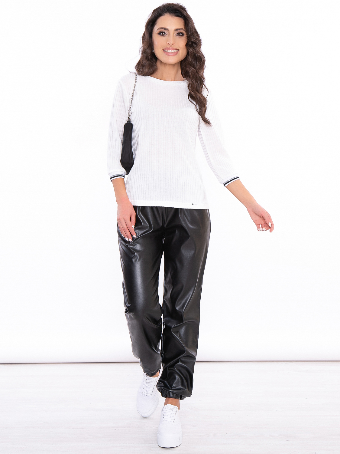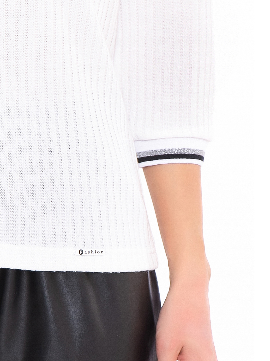 - Джемпер из хлопковой ткани в универсальном белом цвете;