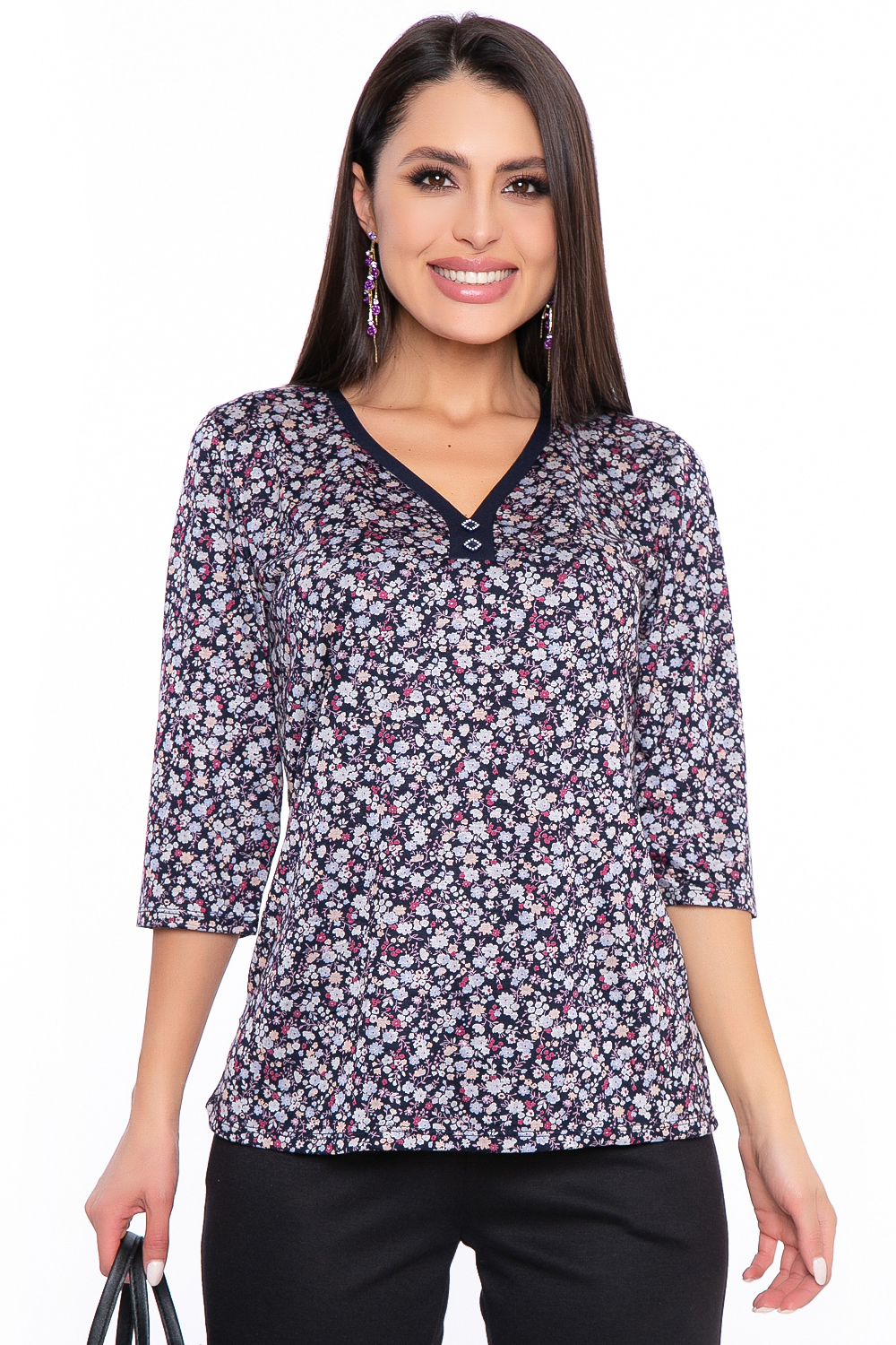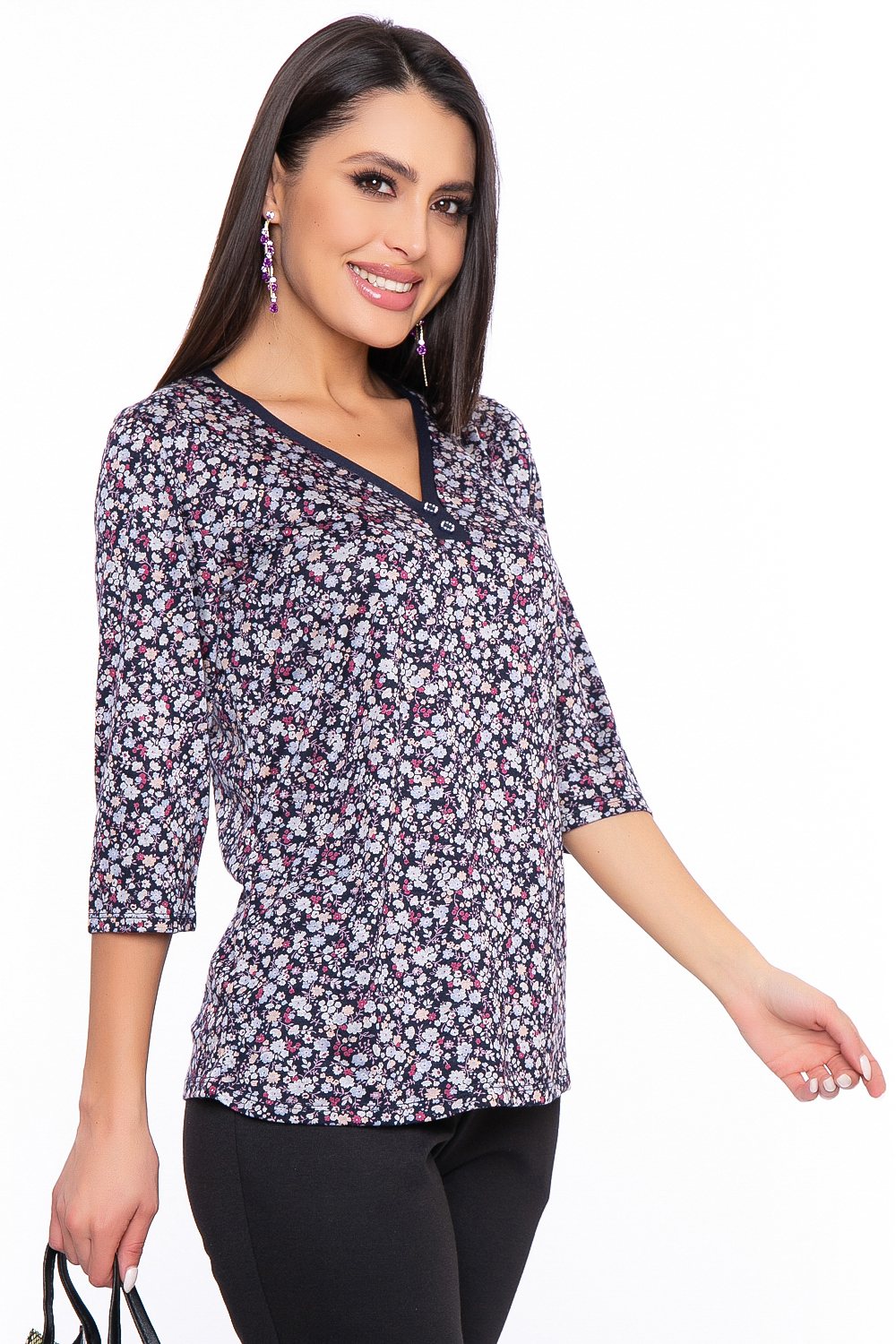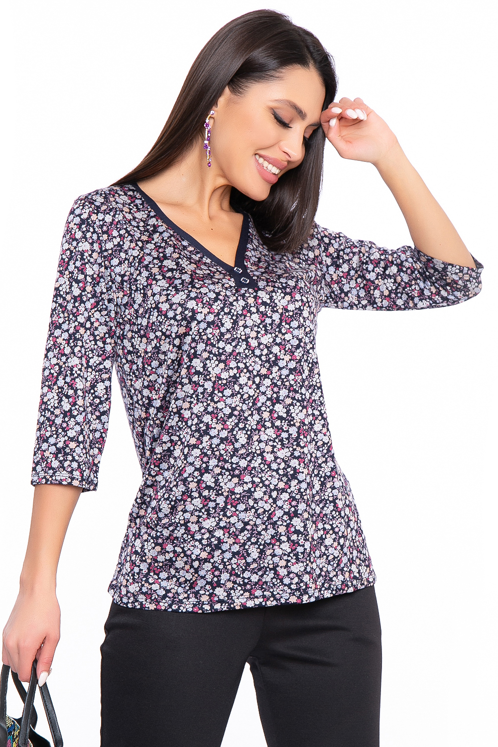 Яркая блуза с цветочным принтом идеально подойдет на каждый день и будет отлично сочетаться, как с джинсами, так и с юбкой или брюками.
