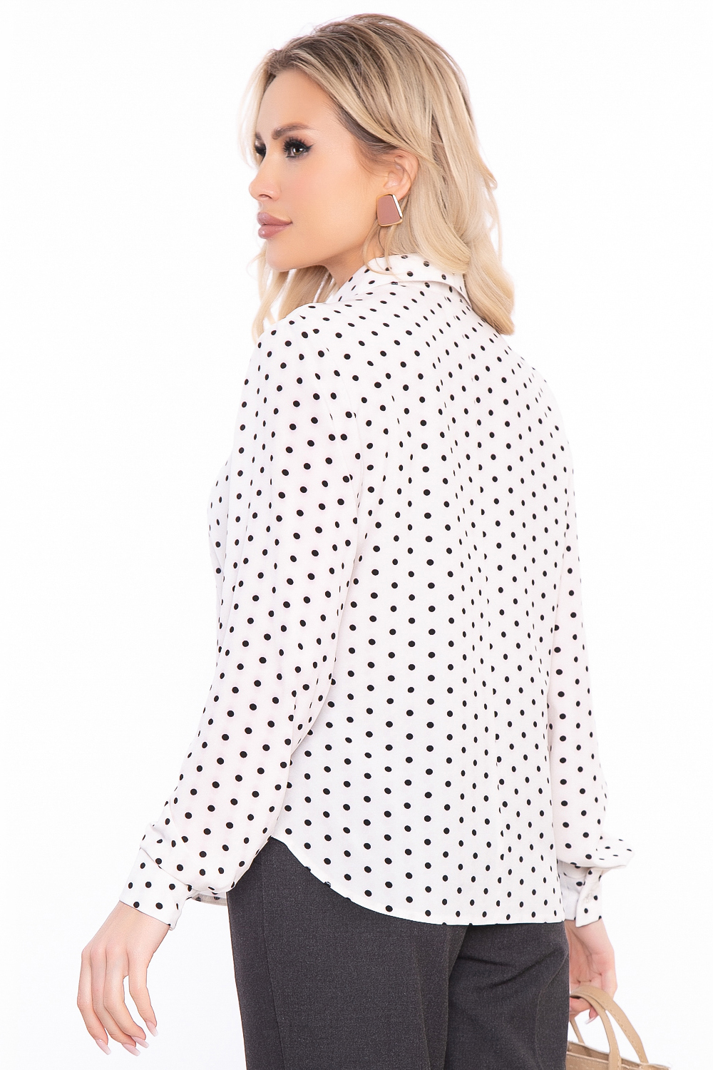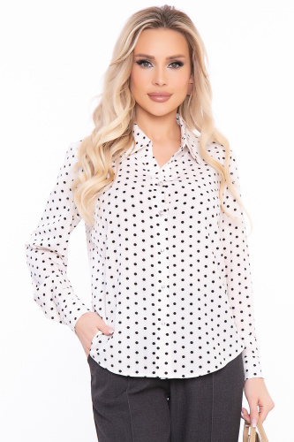 Шикарная блуза для создания классических и вечерних образов. Горошек – трендовый принт, который не теряет популярности уже несколько лет. Сеты с принтом в горох выглядят сильно и женственно, кроме того, это рисунок «вне возраста», одежда в горошек хорошо смотрится и на молодых девушках, и на дамах постарше. Блуза приталенного силуэта из приятной к телу ткани, рукав втачной, длинный, низ на манжете с пуговкой. Оригинальный крой манжета, который притачивается в круговую. Удлиненная спинка, скругленные края низа.