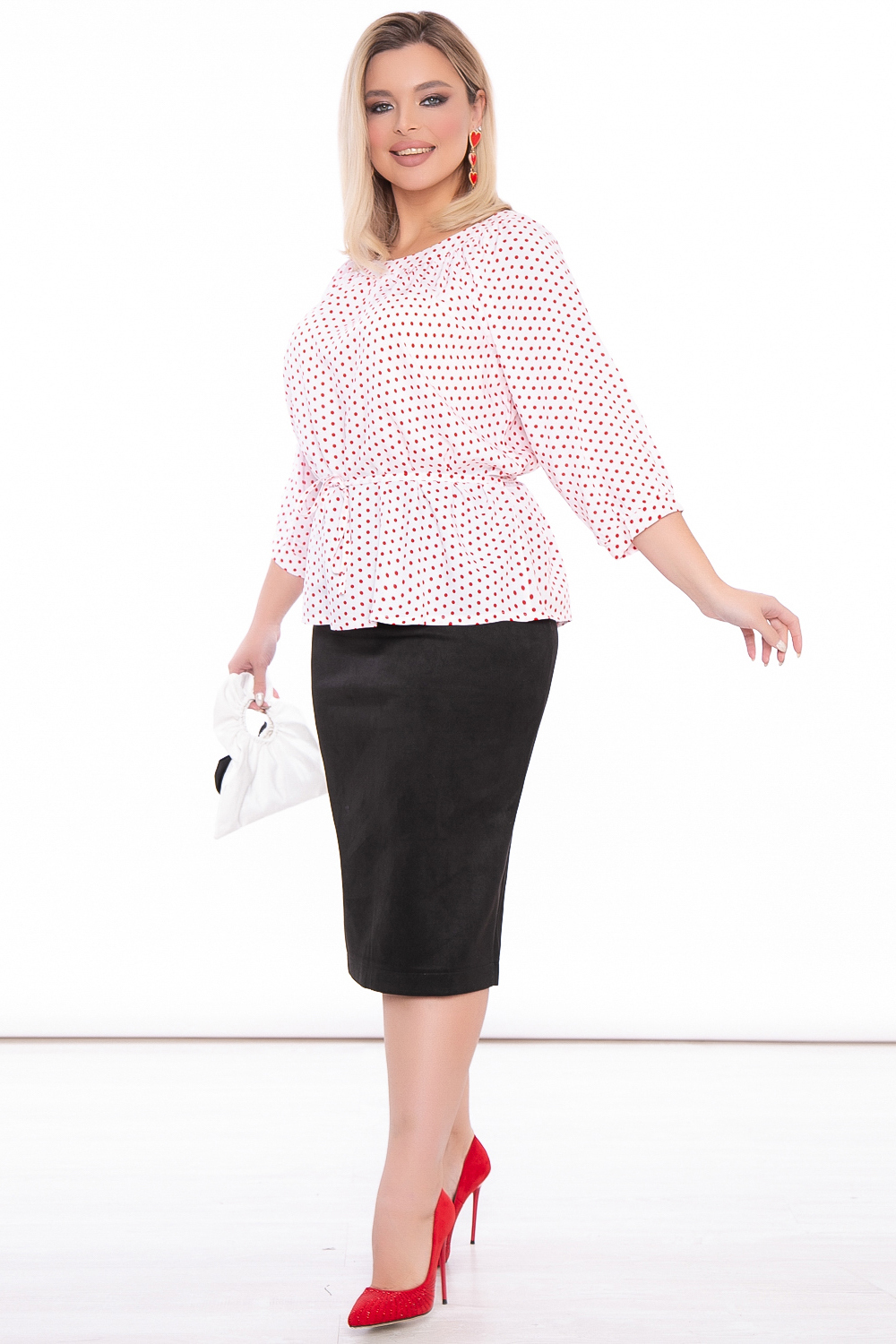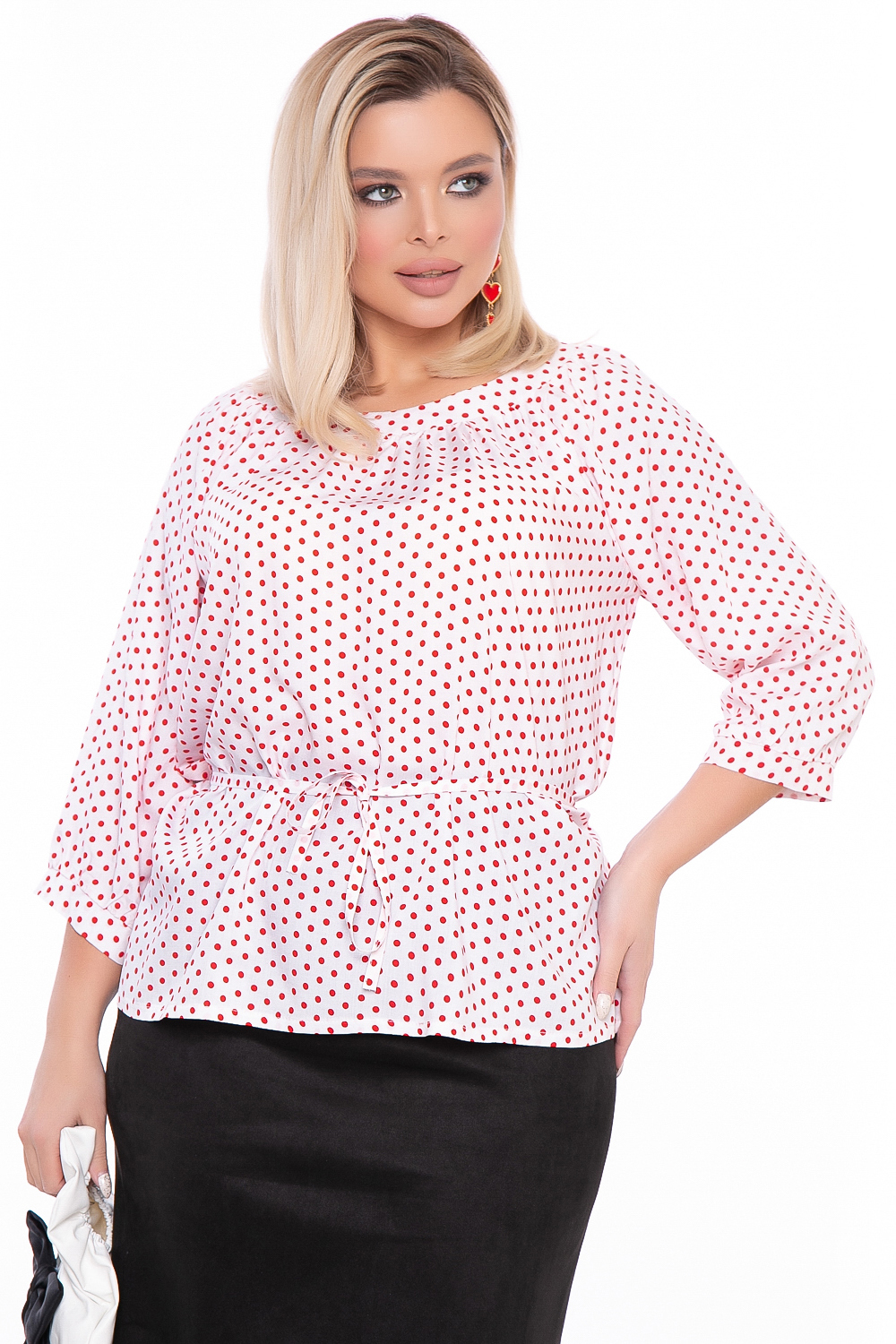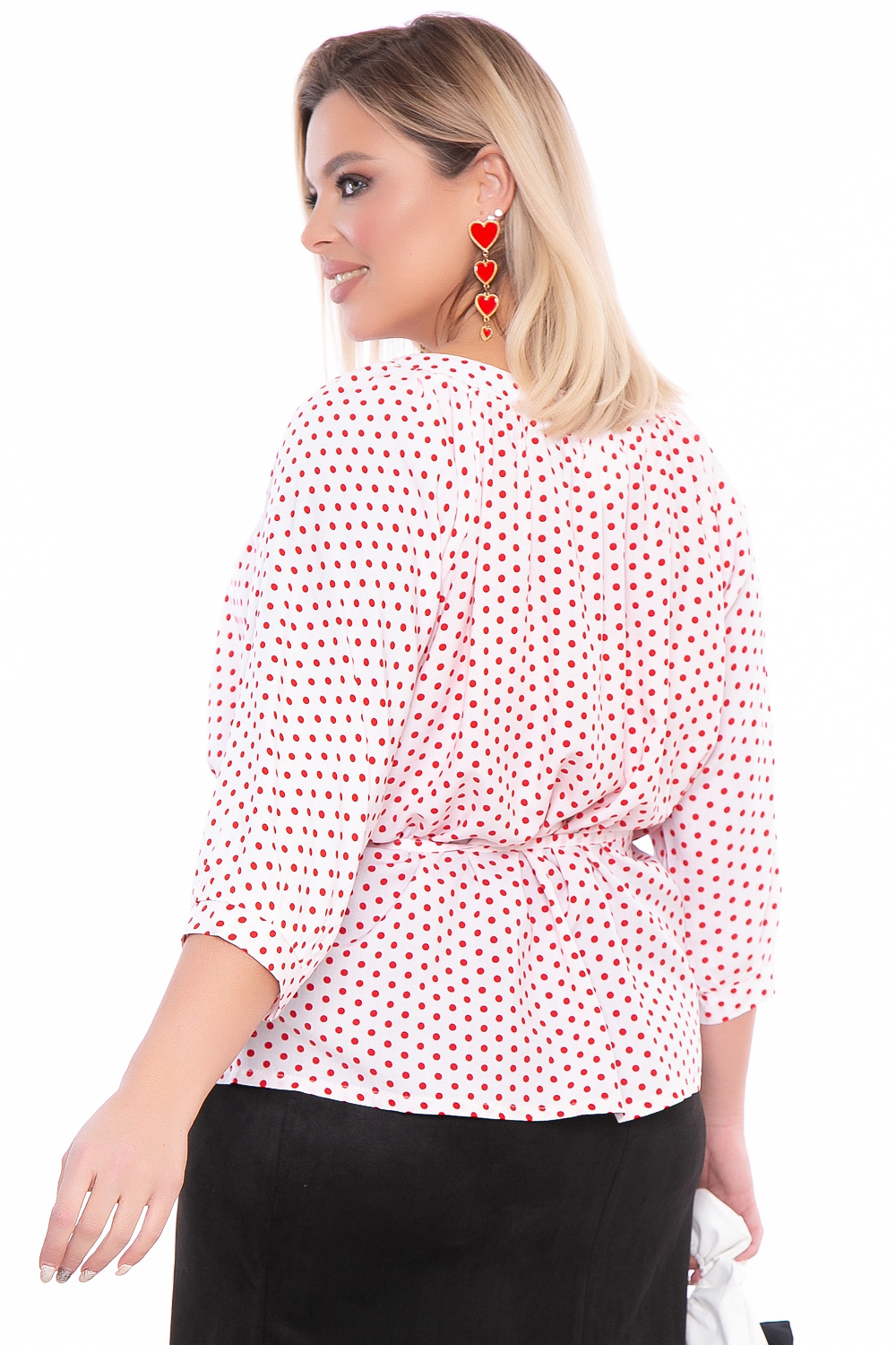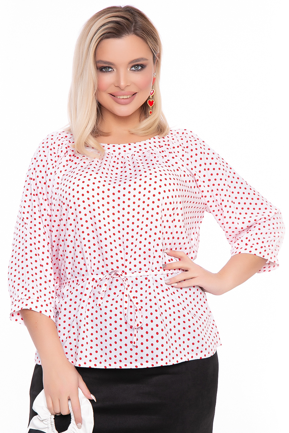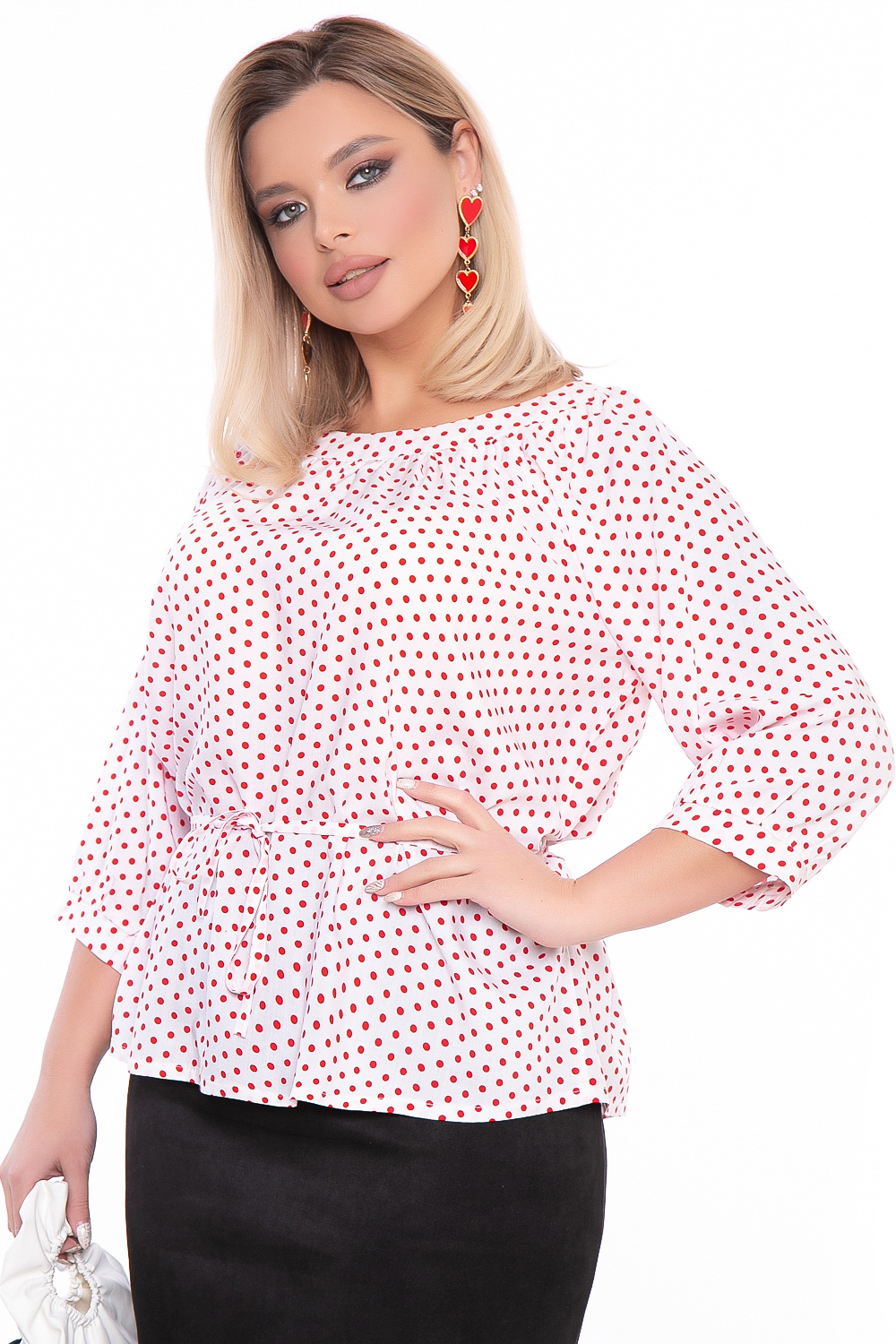 Очаровательная лёгкая блуза свободного кроя с завязками на талии. Округлый вырез горловины. Рукав втачной, три четверти, на манжете. Яркий принт - отличное решение для сезона весна-лето 2022!
