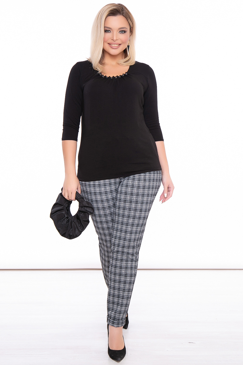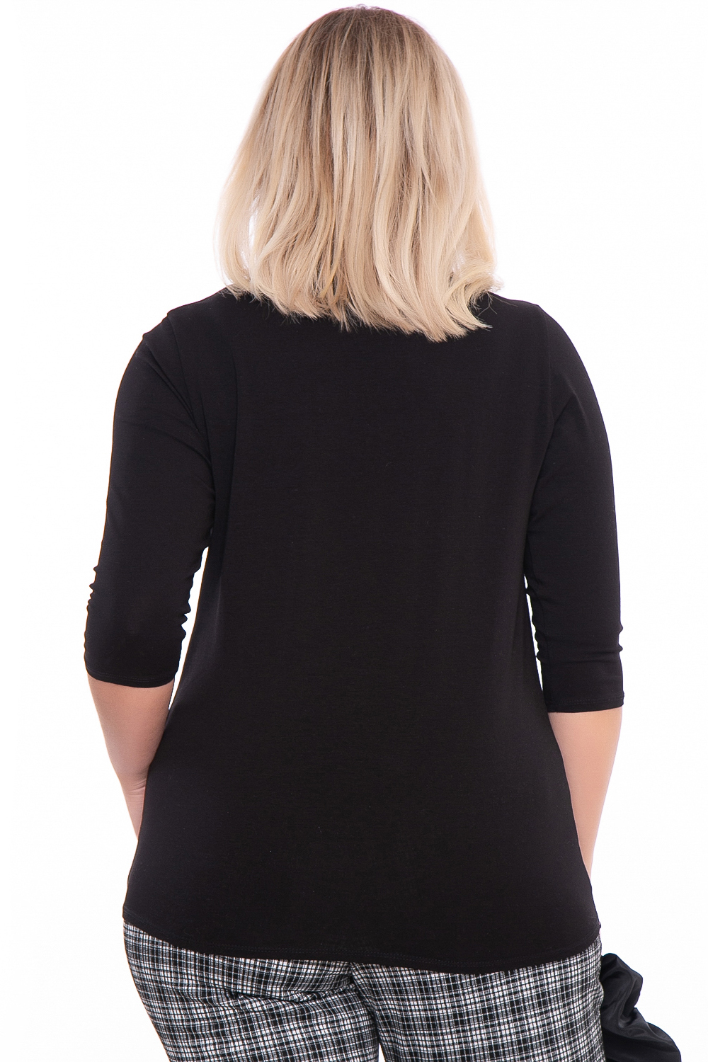 Чёрный лонгслив с акцентным вырезом, украшенный пришивными бусинами из мягкого, приятного к телу трикотажа.