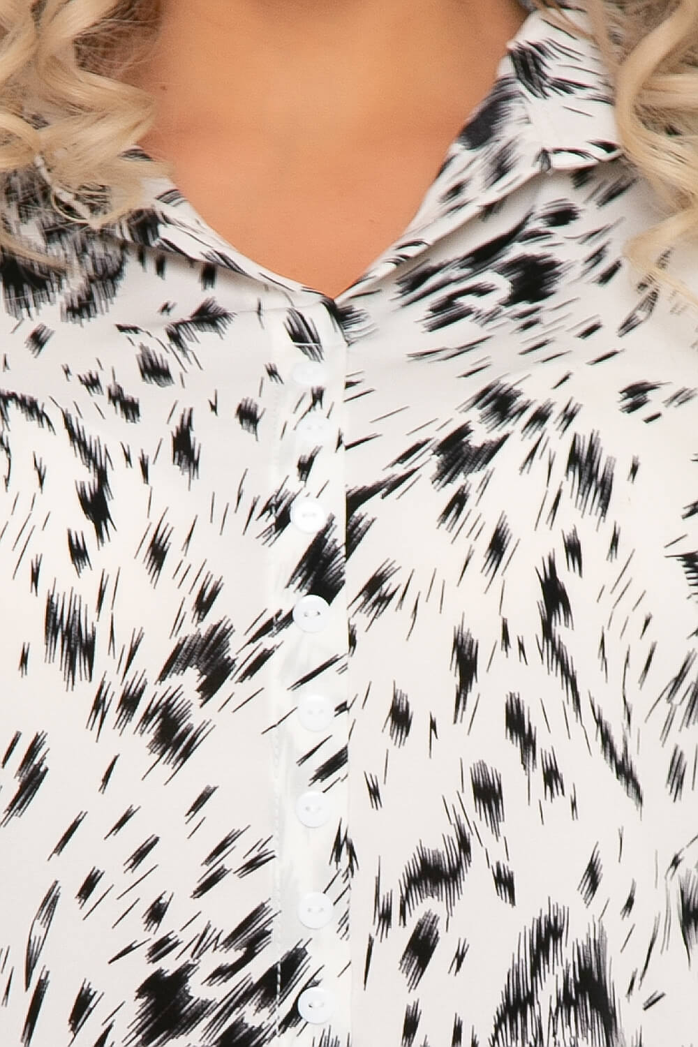 Классическая блуза с анималистичным принтом уместно будет смотреться, как в расслабленном образе, так и в сочетании с деловым стилем. Классический отложной воротничок, по переду застёгивается на пуговицы. Рукав втачной, три четверти, на манжете.