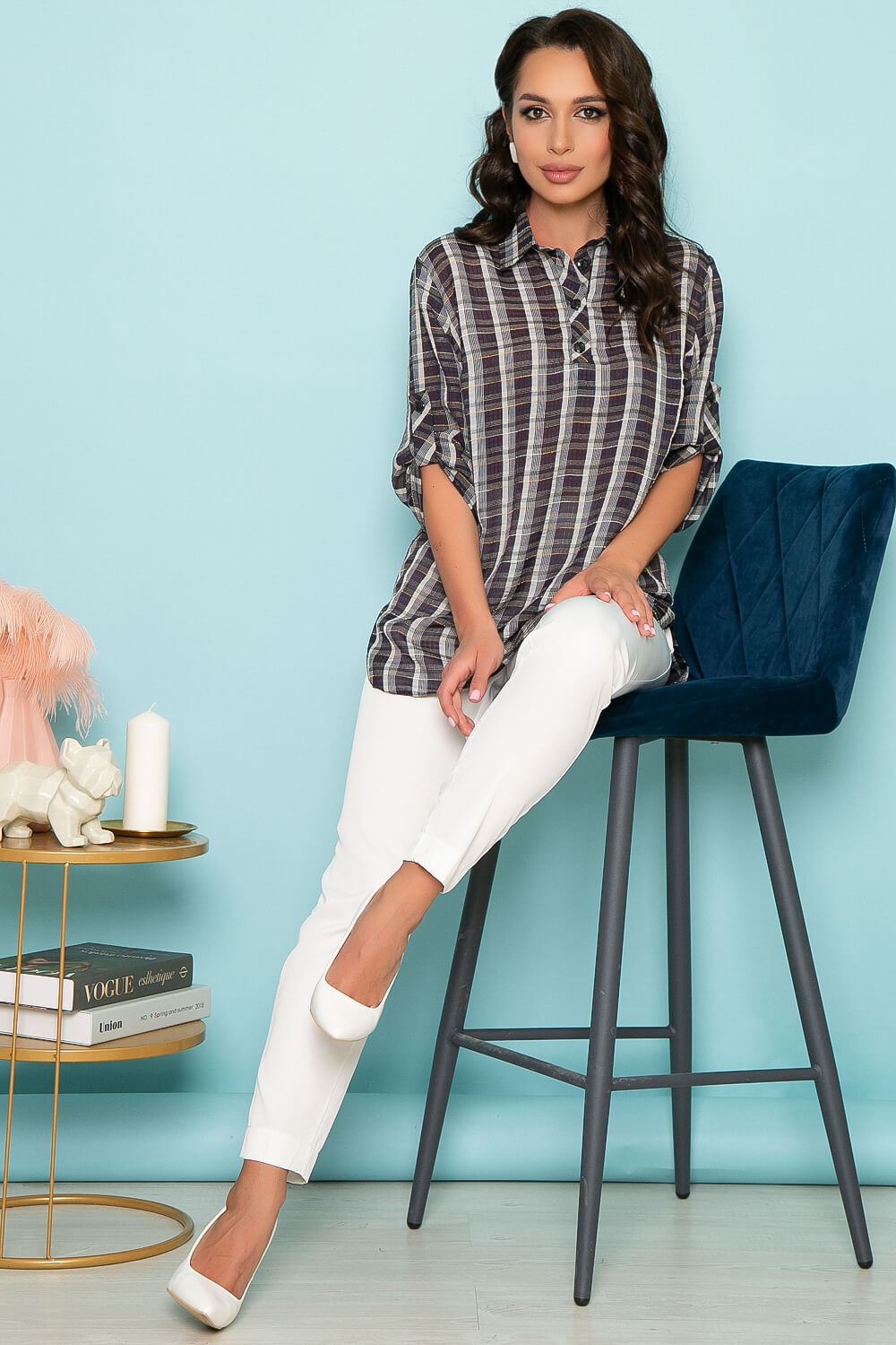 Невесомая блуза-флюид с принтом клетка блуза свободного кроя. Блуза с удлиненной спинкой, края скруглены, по бокам разрезы. Классический отложной воротничок, по переду застёгивается на пуговицы. Рукав три четверти, застёгивается на пату.