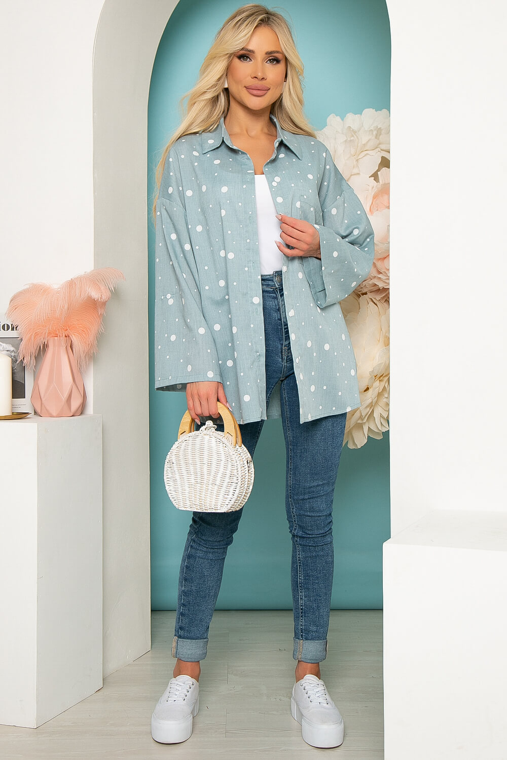 Хлопковая рубашка - прекрасный вариант для создания огромного количества разнообразных образов. Можно надеть в качестве верхнего слоя или, как самостоятельный элемент. Рубашка свободного кроя с отложным воротничком. Рукав свободный, застёгивается на пату.
