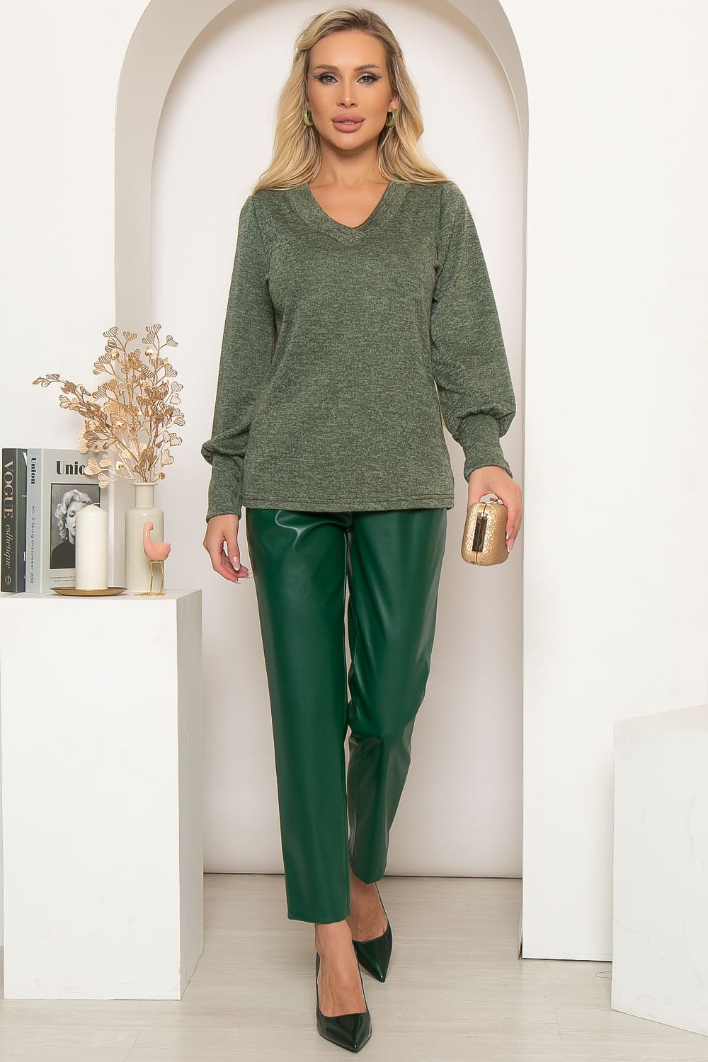 Приятный к телу джемпер из мягкого трикотажа станет прекрасным дополнением в Вашем повседневном гардеробе. Джемпер свободного кроя с V-образным вырезом горловины. Рукав втачной, длинный, низ рукава на широкой манжете.