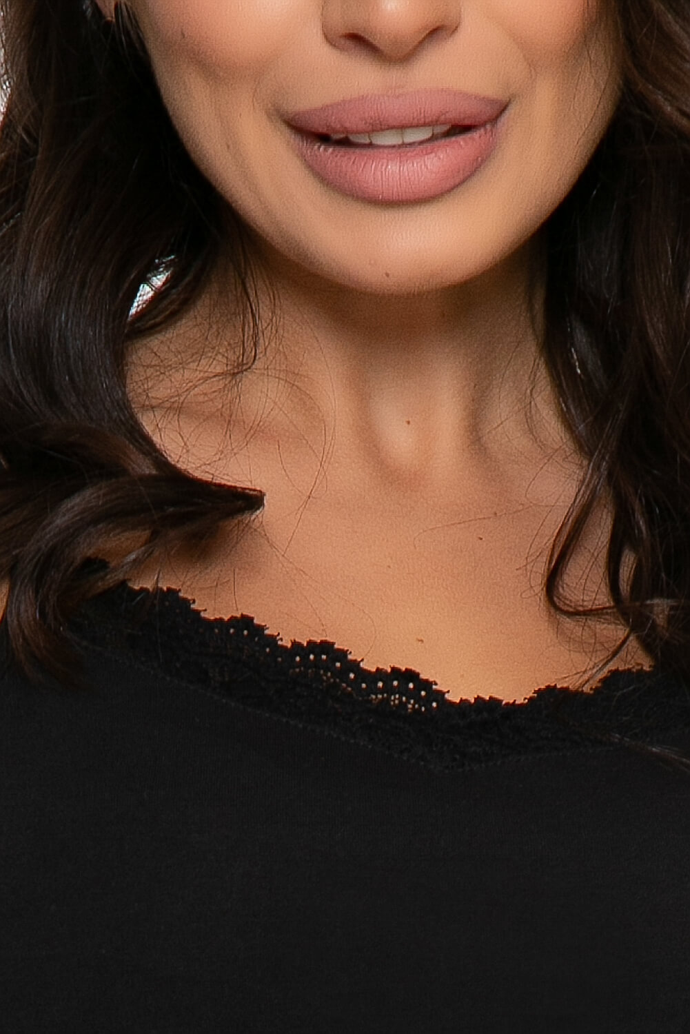 Топ в бельевом стиле на бретелях, украшенный гипюром, создан для элегантного повседневного образа. Если дополнить правильными аксессуарами, легко можно создать женственный вечерний образ.
