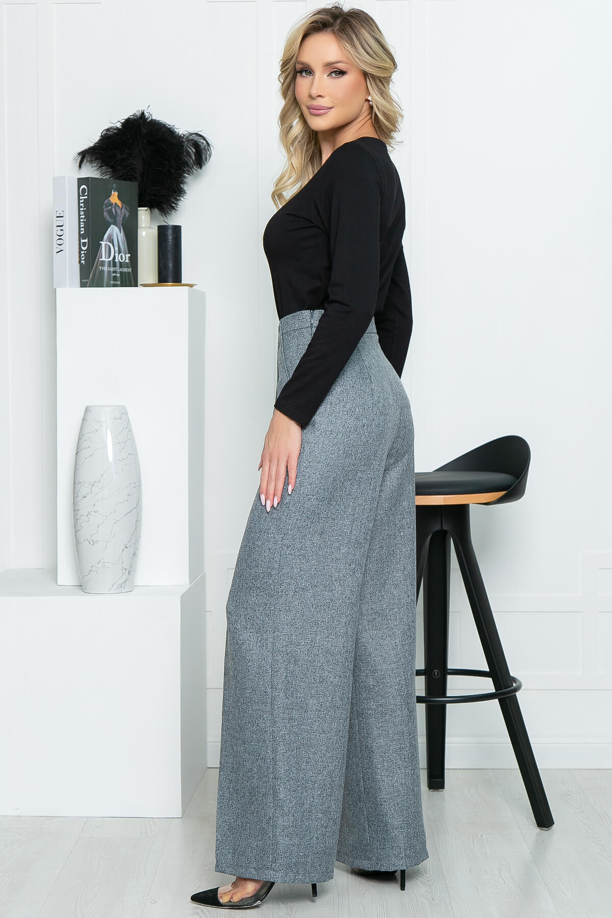 Брюки палаццо из костюмной ткани прекрасно подойдут для стильного делового образа. Классический чёрный цвет позволяет создавать интересные сочетания и побуждает экспериментировать. Дополните образ яркой блузой и аксессуарами в тон или же, наоборот, наденьте консервативный белый или чёрный верх и соберите беспроигрышный классический образ.