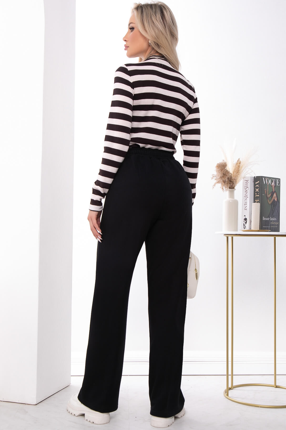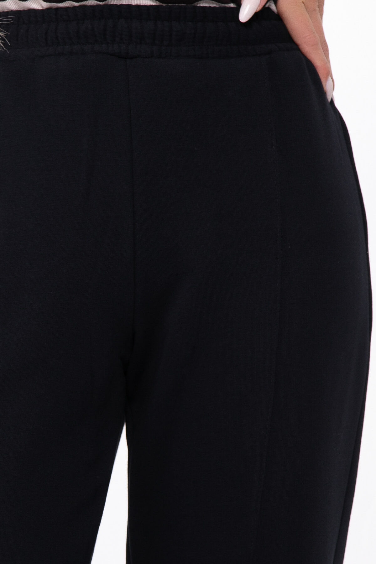 Брюки свободного кроя на каждый день помогут создать стильный и комфортный образ. Пояс на резинке, что обеспечивает комфортную посадку, по переду отстрочена стрелка, визуально вытягивающая силуэт.